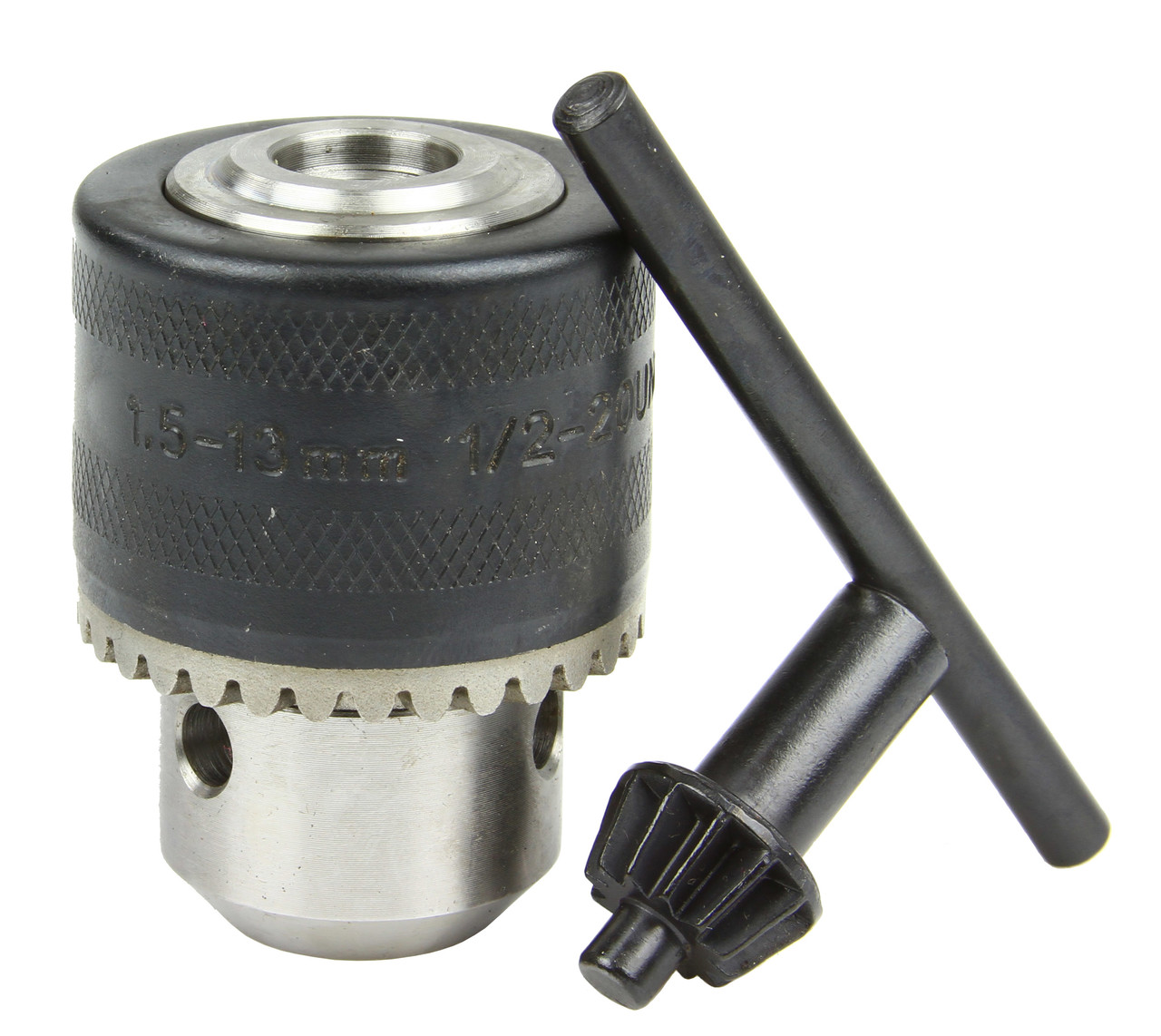 Uchwyt wiertarski z kluczykiem wykonany z wysokogatunkowej stali.