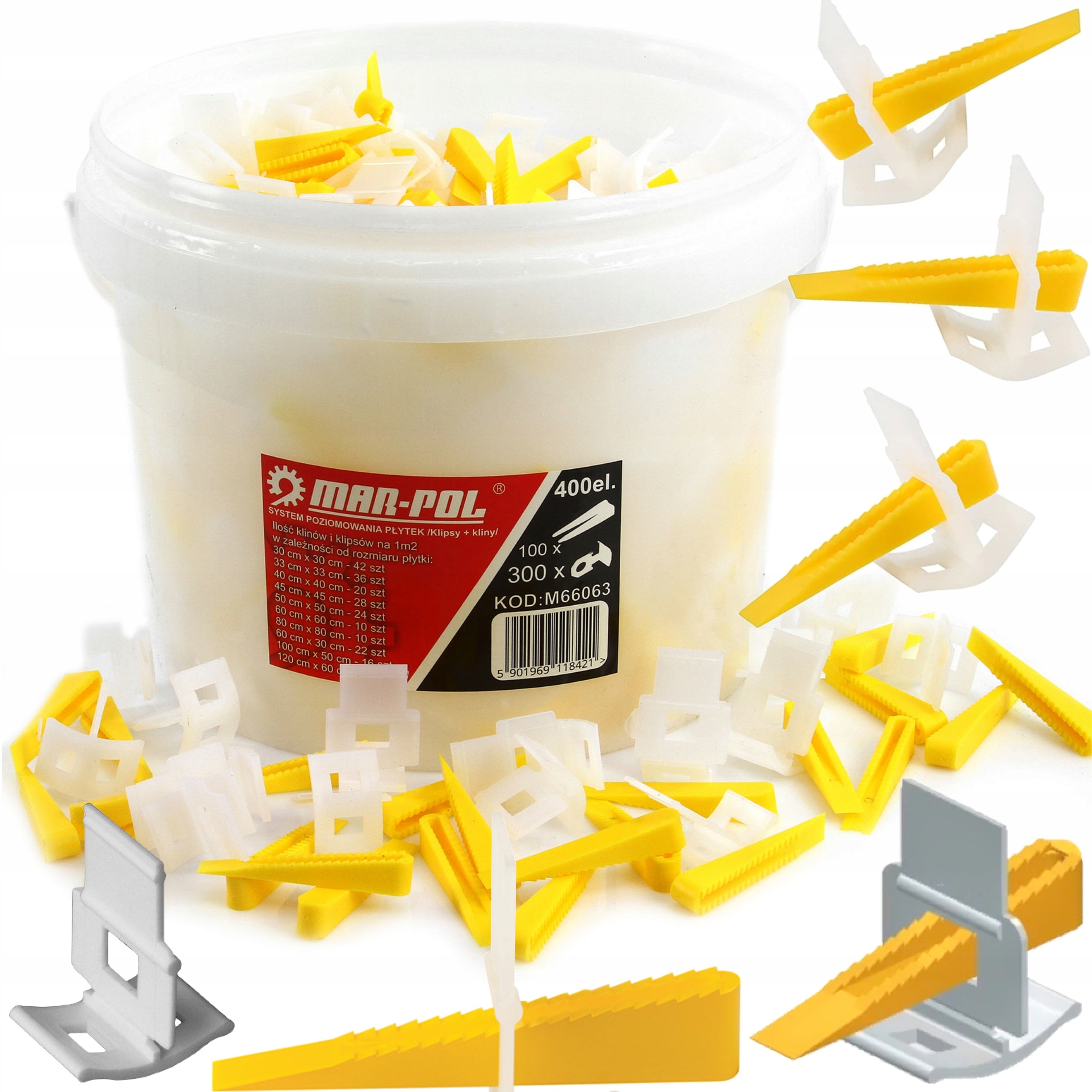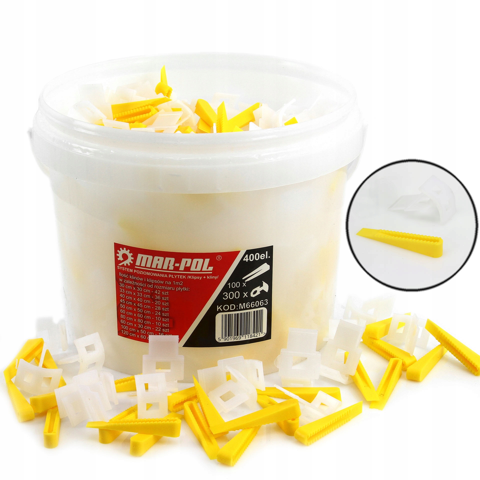 ✅SYSTEM DO POZIOMOWANIA PŁYTEK ZESTAW 100szt KLINÓW + 300szt KLIPSÓW + WIADERKO