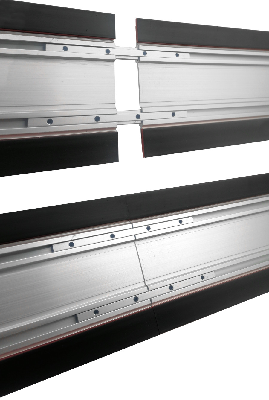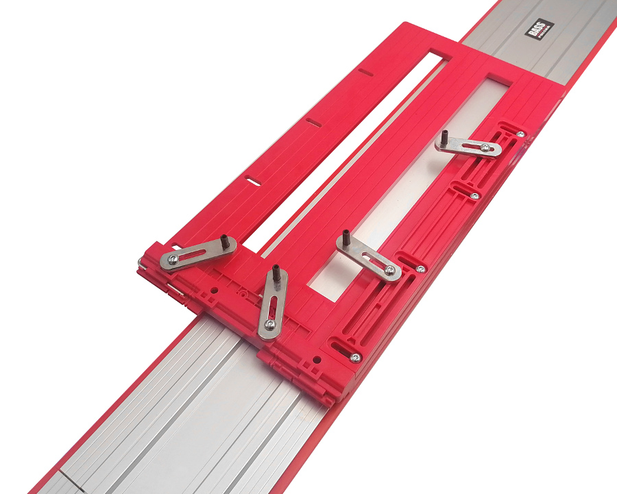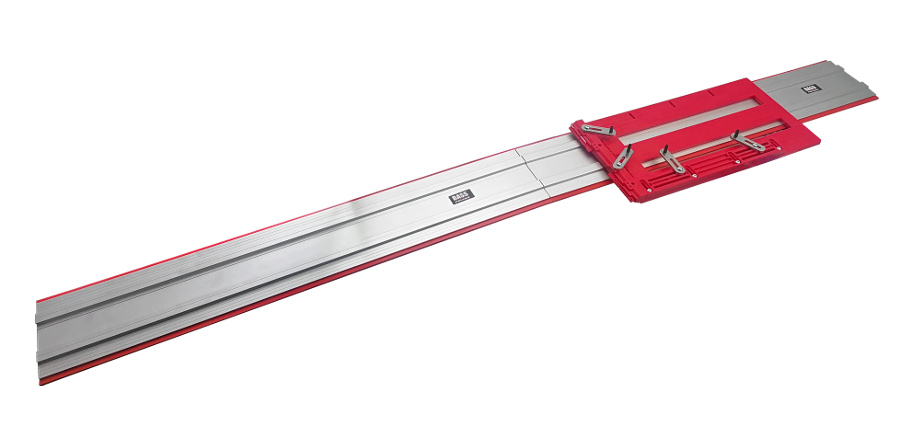 Uniwersalna prowadnica przeznaczona do cięcia wzdłużnego przy pomocy pilarek tarczowych i cięć wzdłużnych pod kątem. Znacznie przyspieszająca pracę i precyzję cięcia. Wykonanie z aluminium zapewnia lekkość i nierdzewność przy pracy na mokro. Dwa przetłoczenia zwiększają sztywność i precyzję cięcia. Gumowa taśma podkładowa na spodzie prowadnicy przeciwdziała strzępieniu laminatu podczas cięcia i przesunięciom prowadnicy w czasie zaznaczania linii. Do unieruchomienia prowadnicy służą dwa ściski dołączone w komplecie. Prowadnica o długości 1500 mm składa się z dwóch części, łączonych, co ułatwia transport i przechowywanie. Łoże do osadzania pilarki jest wyposażone w regulowane uchwyty, umożliwiając współpracę z wieloma modelami pilarek. ✅ Dane techniczne :