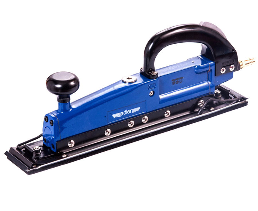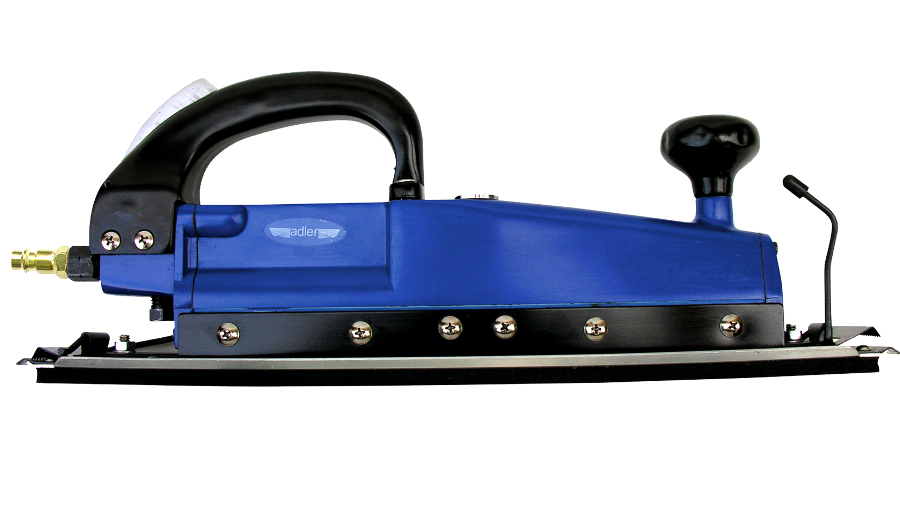 Szlifierki pneumatyczne liniałowe używane w zależności od gradacji stosowanego papieru na różnych etapach obróbki szlifowanego materiału. Zwane potocznie strugami z wyglądu przypominają te ręczne narzędzia stolarskie jednak ich zastosowanie jest dużo szersze. W odróżnieniu od pozostałych typów szlifierek, szlifierki liniałowe pozbawione są ruchów rotacyjnych (obrotowych) oraz oscylacyjnych (mimośrodowych), występują jedynie ruchy posuwiste do przodu i tyłu, jednak ich skok jest zdecydowanie większy. Szlifierka liniałowa AD-186 posiada prostokątną stopę co umożliwia dotarcie do narożników szlifowanego materiału. Duży rozmiar stopy ułatwia obróbkę dużych płaszczyzn. Zapewnia wysoką liczbę cykli posuwu na minutę oraz bardzo duży skok stopy, co przyśpiesza proces szlifowania powierzchni. Szybki montaż papieru ściernego za pomocą odciąganych zacisków. Wygodne, dobrze rozmieszczone uchwyty ułatwiają prowadzenie narzędzia. ✅ Dane techniczne:
