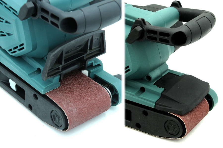 Szlifierka służy do wykańczania elementów drewnianych i podłóg, podstawowego polerowania powierzchni drewnianych, szlifowania wykańczającego elementów metalowych, podstawowego polerowania powierzchni metalowych, usuwania korozji lub farby przed ponownym polerowaniem oraz obróbki wykończeniowej powierzchni łupków, betonu i tym podobnych materiałów. ✅ DANE TECHNICZNE: ZESTAW ZAWIERA: Wymiana papieru ściernego odbywa się bez narzędziowo, wystarczy zwolnić dźwignię napinacza rolek oraz założyć nową taśmę szlifującą. W zestawie znajduje się również worek na pył, dzięki czemu praca jest czysta. Duża szerokość taśmy szlifującej zapewnia równomierne, płynne i szybkie ścieranie obrabianego materiału, bez bruzd i nierówności.