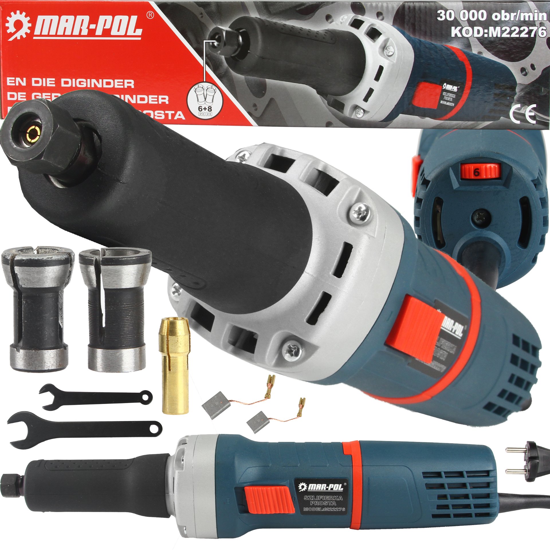 Szlifierka prosta znajduje zastosowanie w pracach ślusarskich, stolarskich i wszelkiego rodzaju obróbce materiałów ze szkła, ceramiki i tworzyw sztucznych. Potrzeba oczyszczenia powierzchni z korozji w trudno dostępnych miejscach czy przeszlifowanie ostrych krawędzi nie stanowić już będą żadnego problemu a płynna regulacja obrotów pozwoli na właściwy dobór prędkości obrotowej wrzeciona szlifierki do materiału który chcemy obrabiać. W zestawie znajdują się dwie wymienne tulejki do mocowania akcesoriów w rozmiarze 6 mm i 8 mm. Daje to szersze możliwości przy doborze akcesoriów. ✅ Dane techniczne Przebieg obrotów zależnie od wybranego biegu