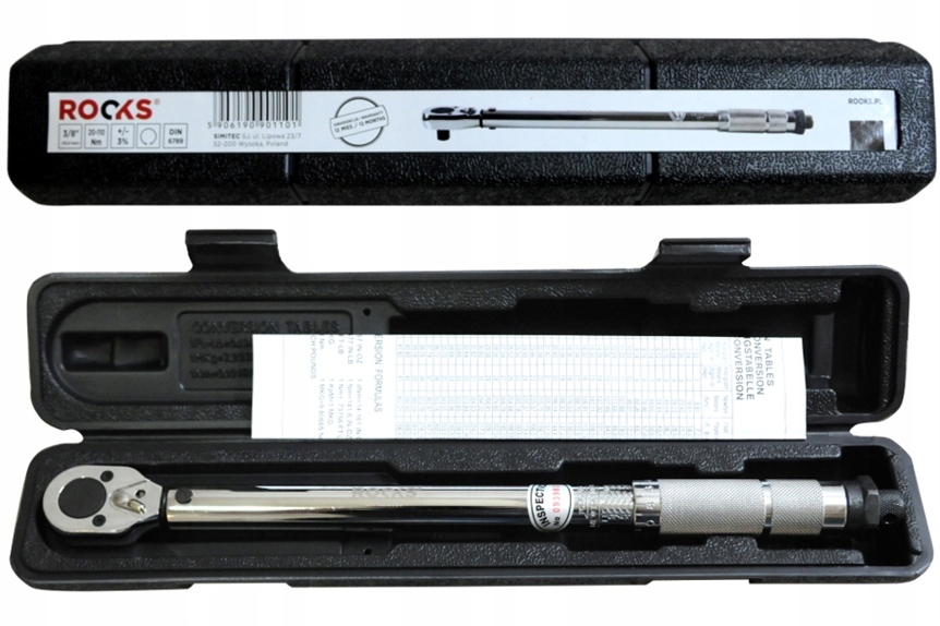 Przeznaczenie: serwis i przemysł. Klucz dynamometryczny 3/8" przeznaczony jest do intensywnej pracy w serwisach. Umożliwia wydajną pracę w serwisie opon i serwisie motoryzacyjnym. konstrukcja: silna, sprawdzona konstrukcja oparta o dwukierunkowy mechanizm sprężynowy, regulacja nastawu w metalowej rękojeści z blokadą. Metalowe ramie, rękojeść oraz głowica wykonane są ze stali stopowych CrV i CrMo, są odporne na działanie zanieczyszczeń, oleju, rozpuszczalników, uderzeń i wysokiej temperatury. Skala klucza dynamometrycznego wyrażona jest w systemie metrycznym (Nm) i calowym. Zmiana nastawu następuje poprzez przekręcenie i zablokowanie rękojeści. W kluczach dynamometrycznych ze sprężynowym mechanizmem należy pamiętać o zluzowaniu sprężyny po zakończonej pracy. ✅ DANE TECHNICZNE: 》》》 KLUCZ DYNAMOMETRYCZNY 3/8" 20-110Nm DWUKIERUNKOWY ROOKS ® OK-02-2030《《《