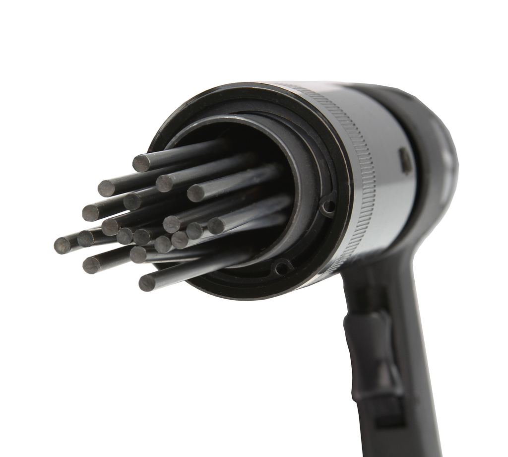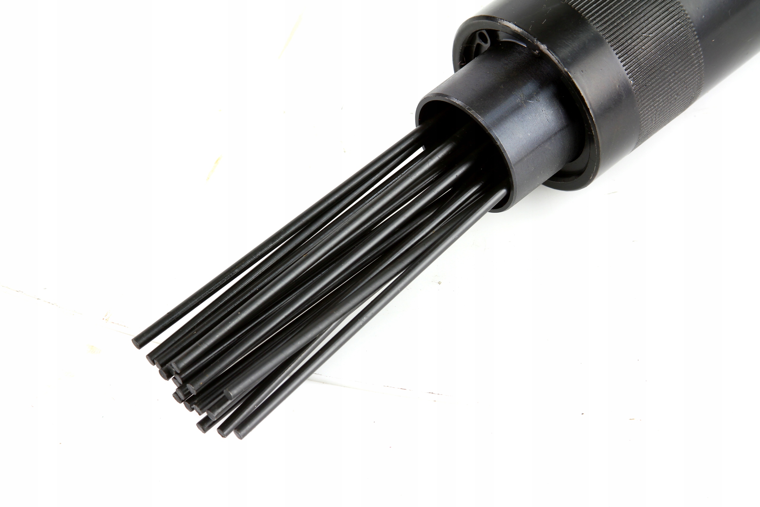 Igłowy młotek pneumatyczny zasilany strumieniem sprężonego powietrza. Przeznaczony do usuwania m.in. zgorzeliny, topnika, kamienia kotłowego, rdzy, farby z elementów konstrukcji stalowych w warsztatach blacharsko-lakierniczych, samochodowych, zakładach produkcyjnych, podczas majsterkowania. ✅ Parametry techniczne :