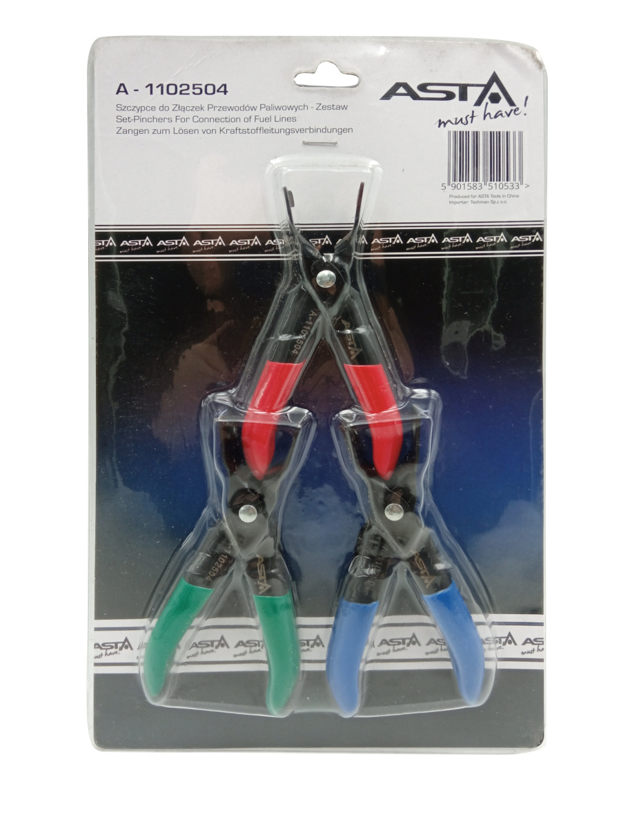 Profesjonalne szczypce do rozłączania złączek przewodów paliwowych dedykowane serwisom samochodowym, naprawczym i zakładom motoryzacyjnym. Szczypce do złączek paliwowych o wzmocnionej konstrukcji zapewniającej długą żywotność, z profilowanymi rękojeściami wykończonymi gumą. Umożliwiają rozłączanie złączek przewodów paliwa w europejskich i azjatyckich modelach samochodów (np. Opel, GM, Fiat, VW)