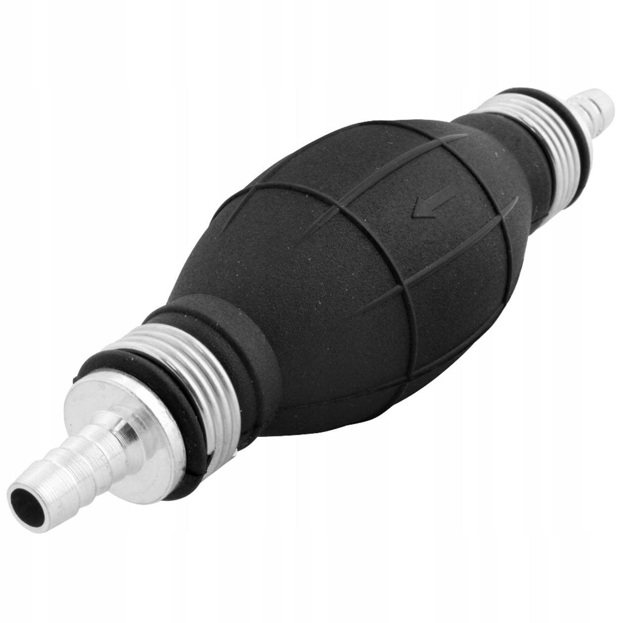 Pompka do paliwa typu gruszka. Posiada zaworek zwrotny zapobiegający cofaniu się paliwa. Jest wykonana z wysokiej jakości gumy oraz aluminium, co zapewnia długą bezawaryjną pracę. Pompka ma szereg zastosowań uniwersalnych, począwszy od pomocy w uruchomieniu silników diesla, kończąc na wielu pracach przy samochodzie, garażu czy na łódce. Wytłoczone strzałki pokazują kierunek, w którym przepływa paliwo. Króćce 10mm są haczykowate i wykonane z aluminium, w przeciwieństwie do tańszych zamienników z tworzywa sztucznego (plastiku). Wspomaga rozruch zimnego silnika. Średnica zewnętrzna 10mm u nasady króćca.POMPA POMPKA DO SPUSZCZANIA PALIWA GRUSZKA 10mm