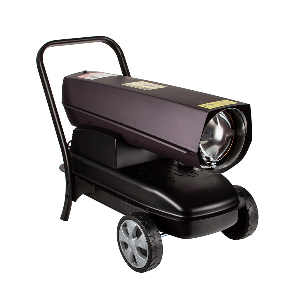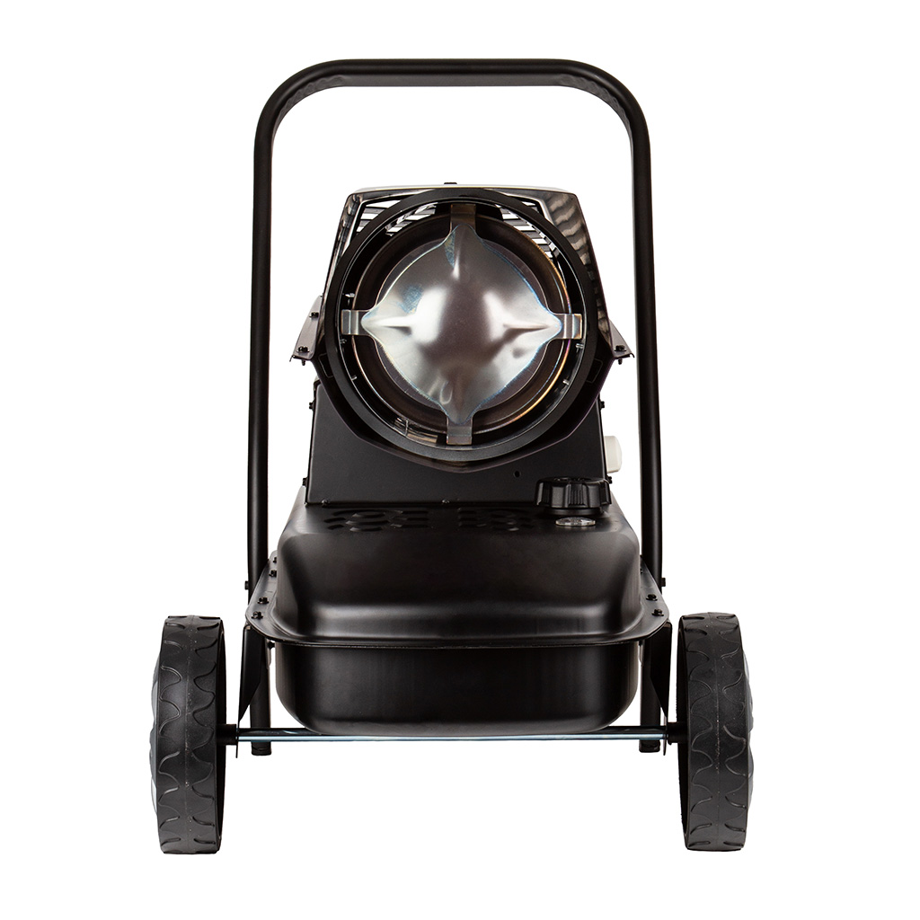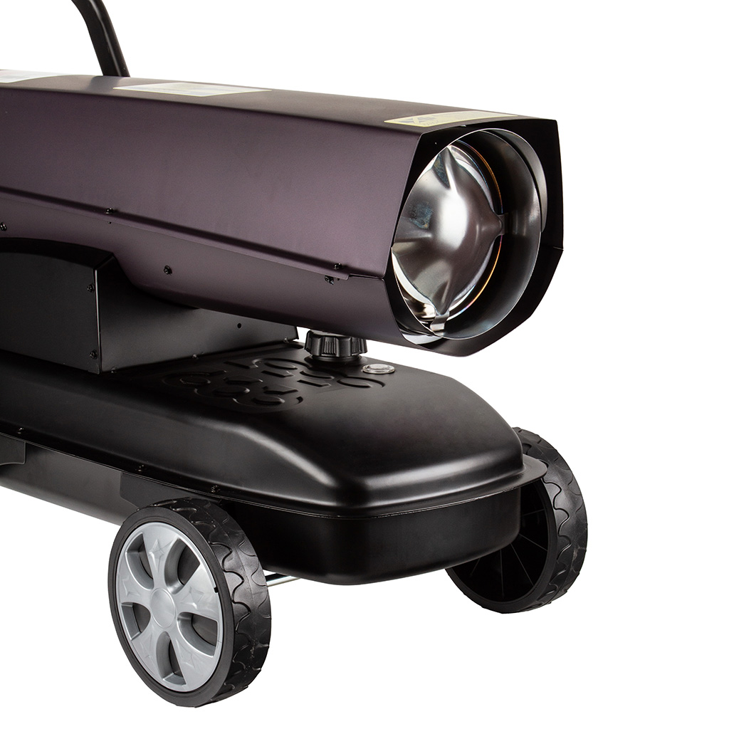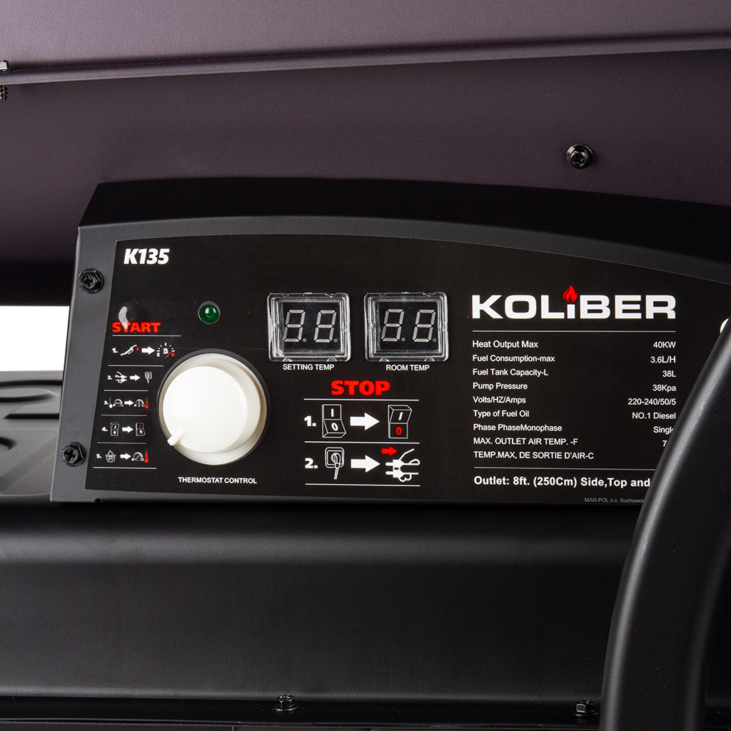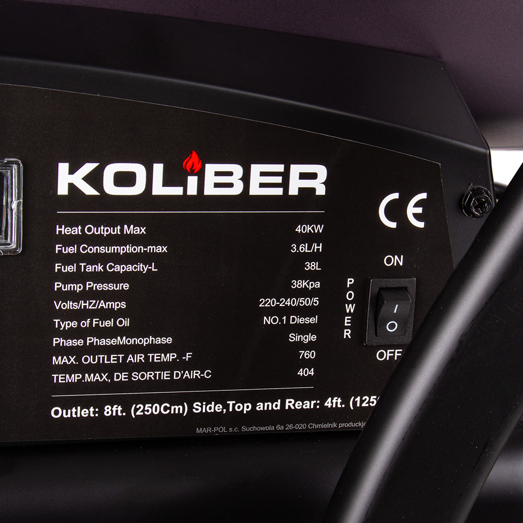 Solidna konstrukcja nagrzewnicy ze zintegrowanymi kołami i 38-litrowym zbiornikiem paliwa pozwala na szybką zmianę ogrzewanego miejsca. Nagrzewnica wyposażona w regulowany termostat, który zapewnia automatyzacje pracy urządzenia. Czytelny wskaźnik precyzyjnie informuje o pozostałej ilości paliwa w zbiorniku. Elektroniczny bezpiecznik płomienia i zintegrowane zabezpieczenie przed przegrzaniem zapewnia maksymalne bezpieczeństwo pracy. Termostatycznie sterowana dmuchawa została opracowana z myślą o niezawodnej eksploatacji komercyjnej, w budownictwie i w rolnictwie. Urządzenie to jest rozwiązaniem szczególnie ekonomicznym także przy ciągłej eksploatacji. Oprócz tego silny agregat o mocy 40 kW generuje dużą ilość gorącego powierza. Żadne inne rozwiązanie grzewcze nie dostarcza bezpośredniego ciepła do otwartych lub trwale wentylowanych pomieszczeń w sposób bardziej skuteczny energetycznie i równie ekonomiczny.》》》 NAGRZEWNICA SPALINOWA DMUCHAWA OGRZEWANIE 40kW Z TERMOSTATEM KOLIBER M80970 《《《