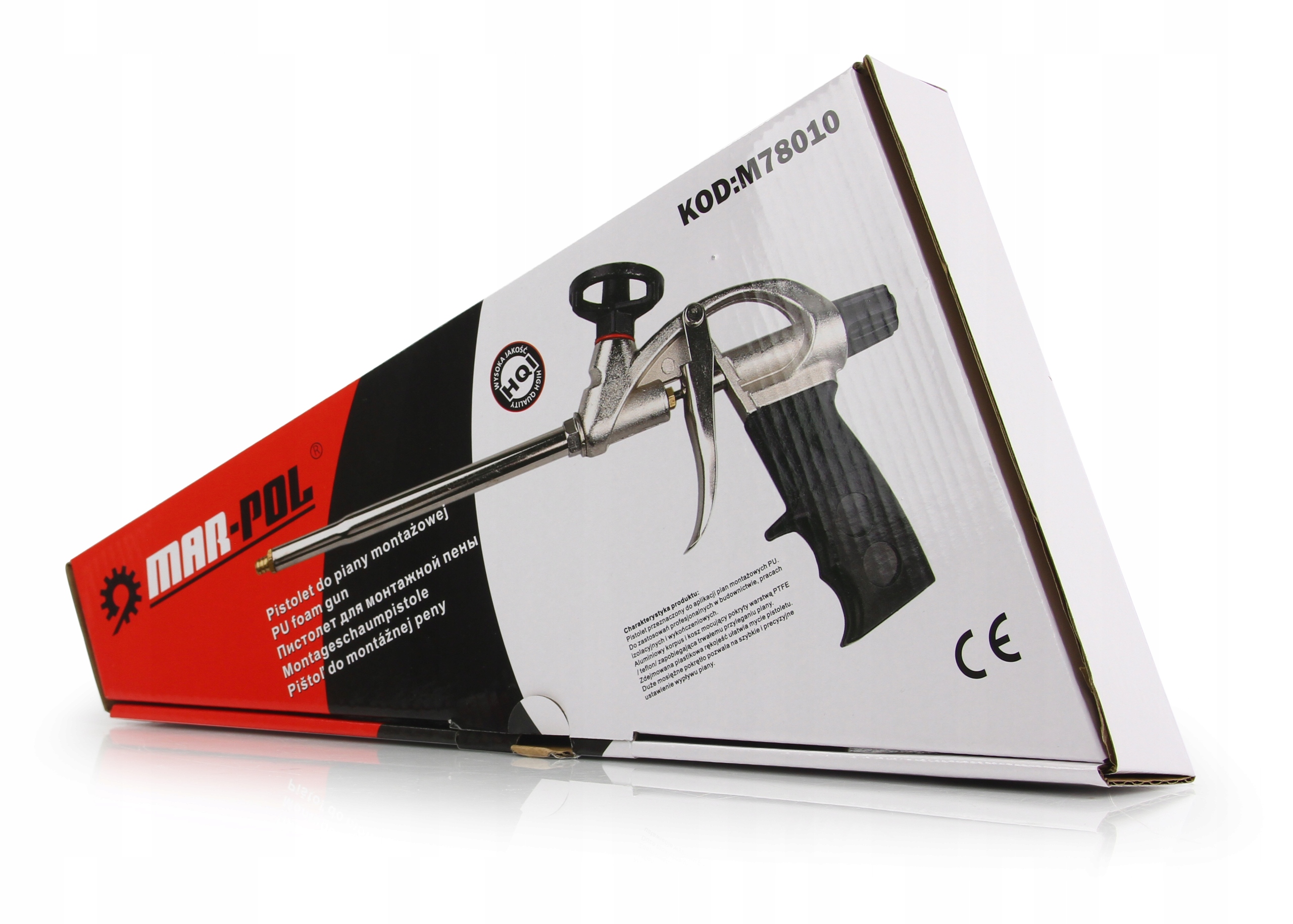 OPIS Pistolet przeznaczony do pianek montażowych. Idealnie nadaje się do prac budowlanych, izolacyjnych, wykończeniowych; do osadzania okien, drzwi, parapetów, a także do wypełniania dziur i pęknięć. Pokryty został warstwą teflonu, co zapobiega przyklejaniu się do niego pianki. Pistolet wyposażony został w pokrętło umożliwiające precyzyjnie dozowanie pianki. Cechy produktuPISTOLET DO PIANY MONTAŻOWEJ