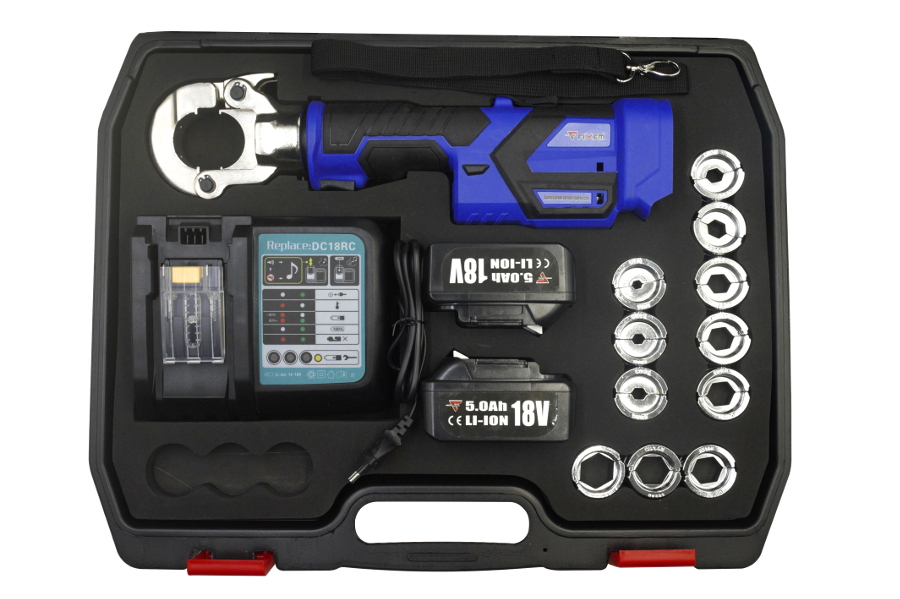 Profesjonalna, akumulatorowa zaciskarka hydrauliczna stworzona do szybkiego i precyzyjnego zaprasowywania końcówek kablowych oraz złączek.