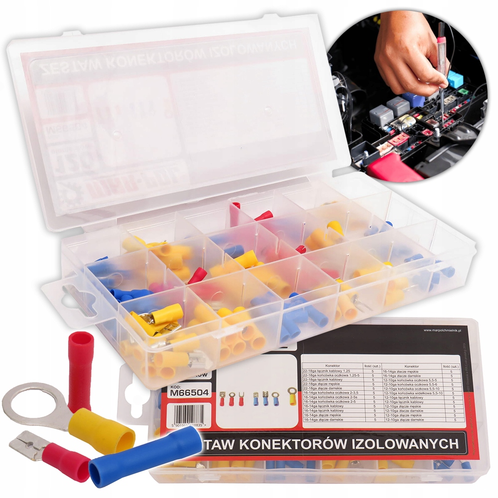 ✅Kompletny zestaw konektorów izolowanych w różnych kolorach 120 sztuk zapakowanych w wygodnym sortowniku.