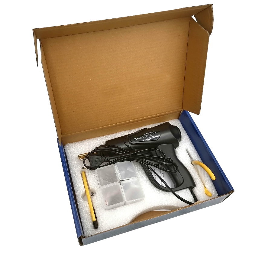 Za pomocą zgrzewarki do plastiku możesz naprawić co najmniej 98% tworzyw sztucznych. To sprzęt, który umożliwi Ci ekspresowe zespolenie wielu uszkodzonych przedmiotów w domu i w garażu. Zgrzewarka plastiku to niezastąpione narzędzie podczas naprawy m.in. zderzaków, desek rozdzielczych, elementów wnętrza i kokpitu pojazdów oraz opraw na reflektory. Zgrzewarka do plastiku przyda się również w domu Lutownica sprzedawana jest w zestawie z aż 4 rodzajami grotów zgrzewających, za pomocą których możesz naprawić niemal wszystko! ✅ Skład zestawu :