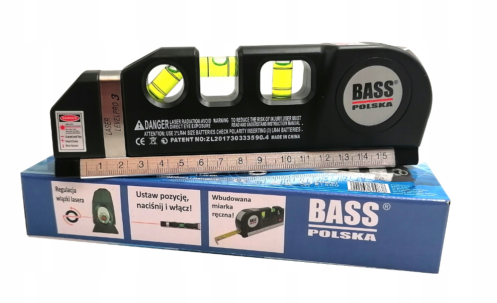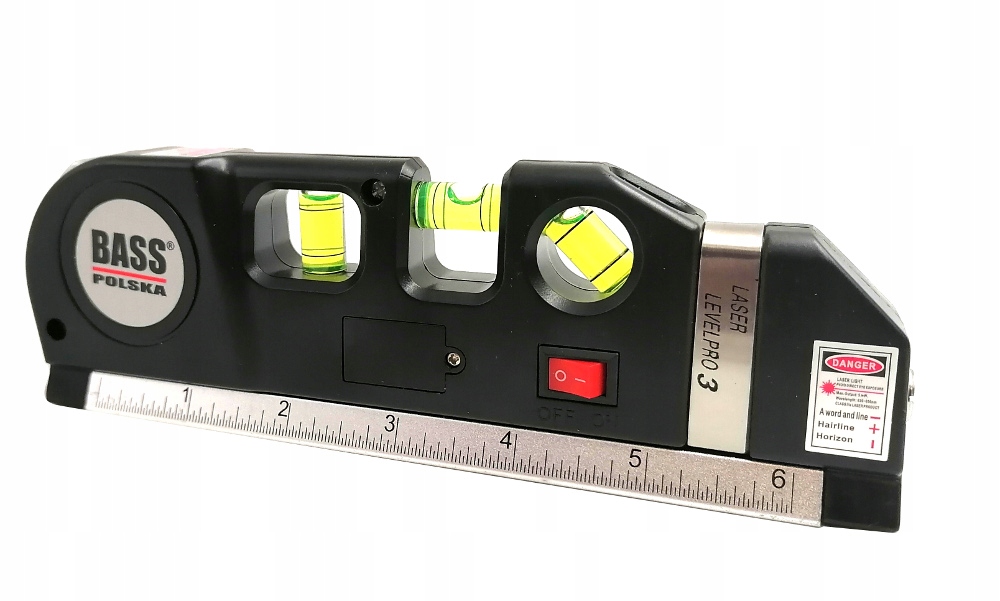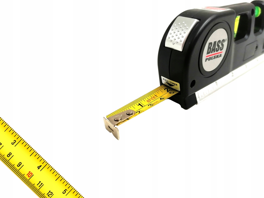 Poziomica BASS POLSKA ® z wbudowaną miarą długości 250 cm. Poziomica to niezbędne narzędzie podczas prac remontowych czy budowlanych. Posiada wbudowany laser z 3 trybami wyznaczania pionu, poziomu czy i pionu i poziomu. Poziomica przyda się nie tylko dla profesjonalistów ale również do zastosowań domowych gdzie potrzebny jest dobry "poziom". Urządzenie posiada wbudowana miarę o długości 250 cm. Pozwoli ci na szybie zmierzenie przedmiotu bez szukania miarki. Świetnie sprawdzi się podczas remontów oraz dni codziennych. Poziomica laserowa posiada wiele zalet jedną z nich jest to, że posiada aż 3 tryby wyznaczania: Dzięki ruchomej głowicy lasera, która porusza się zarówno w górę jak i dół łatwo i skutecznie dostosujesz odpowiedni kąt do wyznaczanej struktury.》》》 POZIOMICA LASEROWA Z MIARKĄ LASER LINIJKA 4w1 BASS POLSKA ® BP-1464 《《《