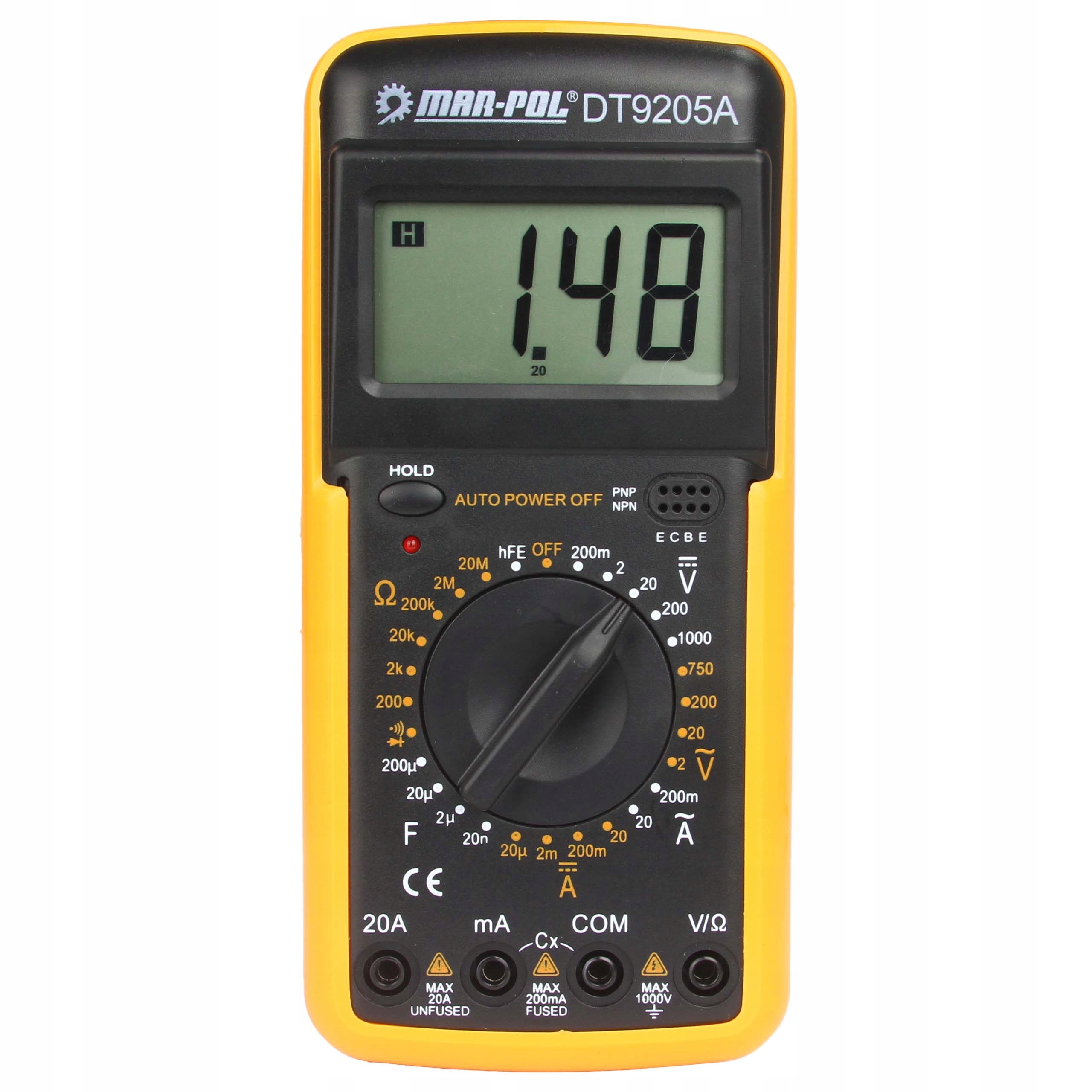 DT9205A to jeden z prostszych mierników cyfrowych, który pozwala na dokonanie podstawowych pomiarów elektrycznych. Idealnie sprawdzi się w każdym domu, dla pasjonata elektroniki, do dokonywania pomiarów w samochodzie czy motocyklu.CYFROWY UNIWERSALNY MIERNIK PRĄDU MULTIMETR LCD DT-9205A