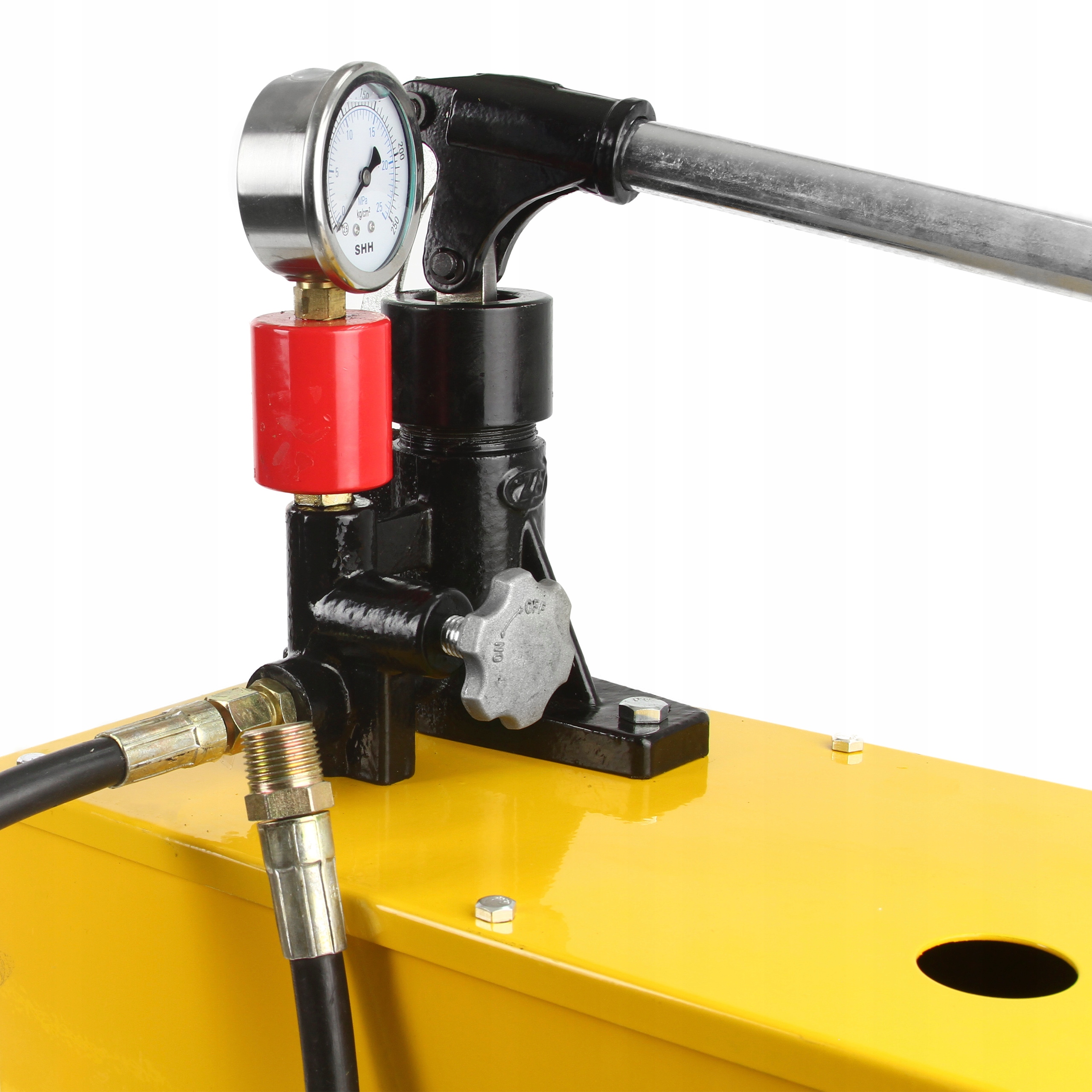 Pompa do prób ciśnieniowych wykorzystywana jest do dokładnego i szybkiego wykonywania prób ciśnieniowych, prób szczelności rurociągów lub zbiorników w instalacjach sanitarnych, grzewczych, w kotłach i zbiornikach ciśnieniowych Idealna do napełniania układów solarnych lub do wypełniania instalacji środkami niezamarzającymi. Niezastąpione narzędzie dla każdego instalatora: napełnianie i próby ciśnieniowe wodą lub olejem w jednym cyklu roboczym Przeznaczenie: Badanie szczelności systemów rurowych ( instalacje wodne, CO, sprężonego powietrza, olejowe ) Badania ciśnieniowe, badania szczelności przy wytwarzaniu kotłów, zbiorników ciśnieniowych. Napełnianie instalacji solarnych. Iniekcja środków przeciw zamarzaniu do istniejących instalacji COPRÓBNIK SZCZELNOŚCI UKŁADÓW HYDRAULICZNYCH