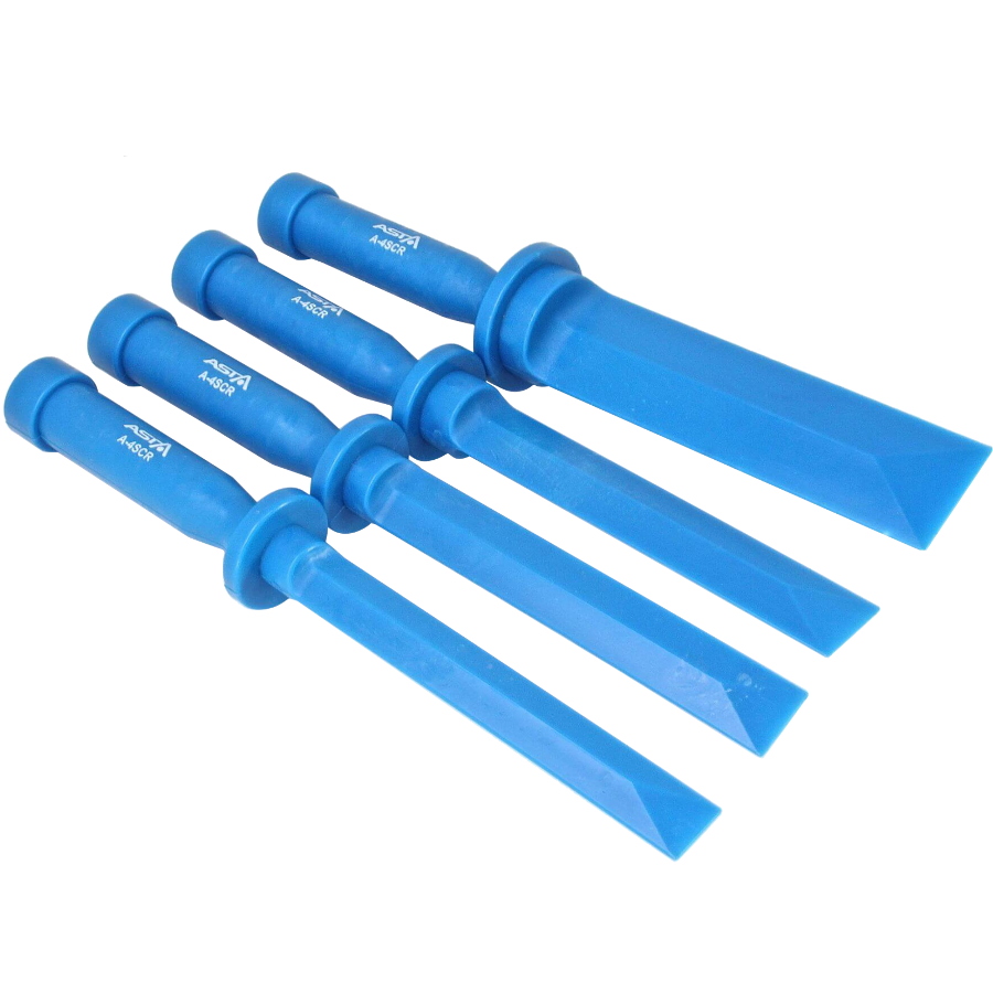 Zestaw plastikowych skrobaków do usuwania zabrudzeń, starych warstw farby, naklejek, ciężarków z felg aluminiowych itp. Przystosowane do prac w serwisach samochodowych, tapicerskich, blacharskich i lakierniczych. Skrobaki wykonane z utwardzanego polioksymetylenu, umożliwiają pracę bez pozostawiania śladów zarysowań na czyszczonej powierzchni. W zestawie znajdują się 4 skrobaki o długości 270mm: Materiał: Polioksymetylen (POM)