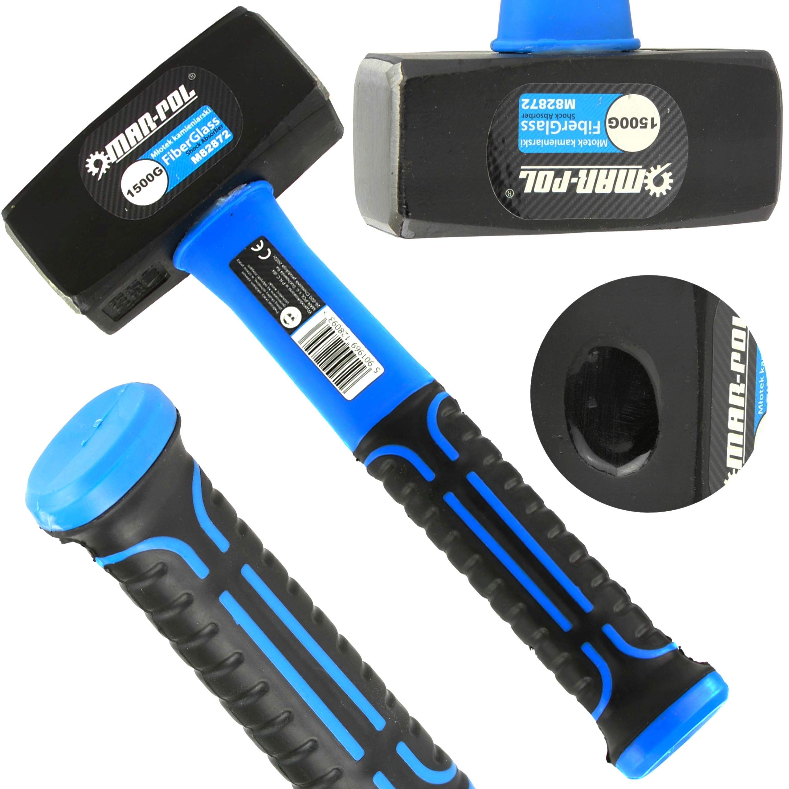 MŁOTEK KAMIENIARSKI MŁOT WYBURZENIOWY DWUOBUCHOWY FIBERGLASS 1,5KG 1500G