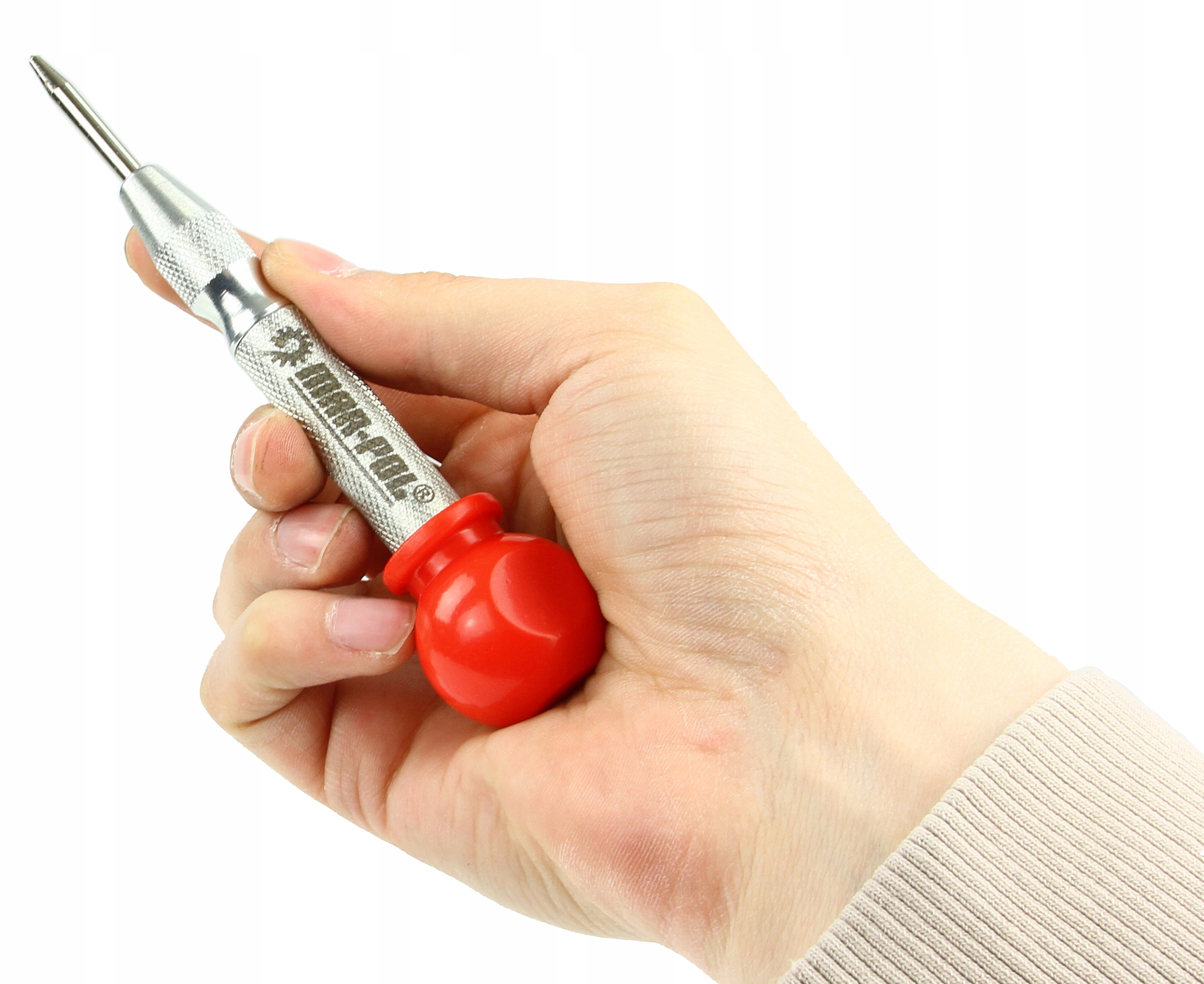 Punktak automatyczny to urządzenie służące najczęściej do wybijania precyzyjnych otworów i oznaczenia punktu przed rozpoczęciem wiercenia w różnego rodzaju materiałach takich jak drewno, metal, czy tworzywa sztuczne. Ułatwia rozpoczęcie wiercenia, ograniczając niekorzystny efekt przesuwania się wiertła po powierzchni materiału. Jest stosowany w różnych branżach, takich jak stolarstwo, tapicerstwo, czy krawiectwo. Punktak ma 130 mm długości. Jest wygodny i łatwy w obsłudze, dzięki czemu nawet początkujący użytkownicy bez problemu mogą go wykorzystać w swoich projektach. Dzięki zastosowaniu wysokiej jakości materiałów oraz solidnej konstrukcji punktak jest trwały i niezawodny, co zapewnia długą żywotność urządzenia. Punktak ma również możliwość regulacji siły uderzenia iglicy w zależności od aktualnie znakowanego materiału. Sposób użycia: Przyłożyć punktak ostrym końcem do miejsca wiercenia i uderzyć mocno dłonią. Przystawić punktak ostrym końcem do znaczonego materiału. Docisnąć silnie ręką , iglica uderzając zaznaczy trwale punkt na materiale. Punktak nie wymaga naciągania sprężyny -odbywa się to w sposób automatyczny. Bezpośrednio po dociśnięciu iglicy do materiału i uderzeniu, możemy powtórzyć czynność, zaznaczając kolejny punkt. Punktak nie wymaga naciągania sprężyny -odbywa się to w sposób automatyczny. Bezpośrednio po dociśnięciu iglicy do materiału i uderzeniu, możemy powtórzyć czynność, zaznaczając kolejny punkt.