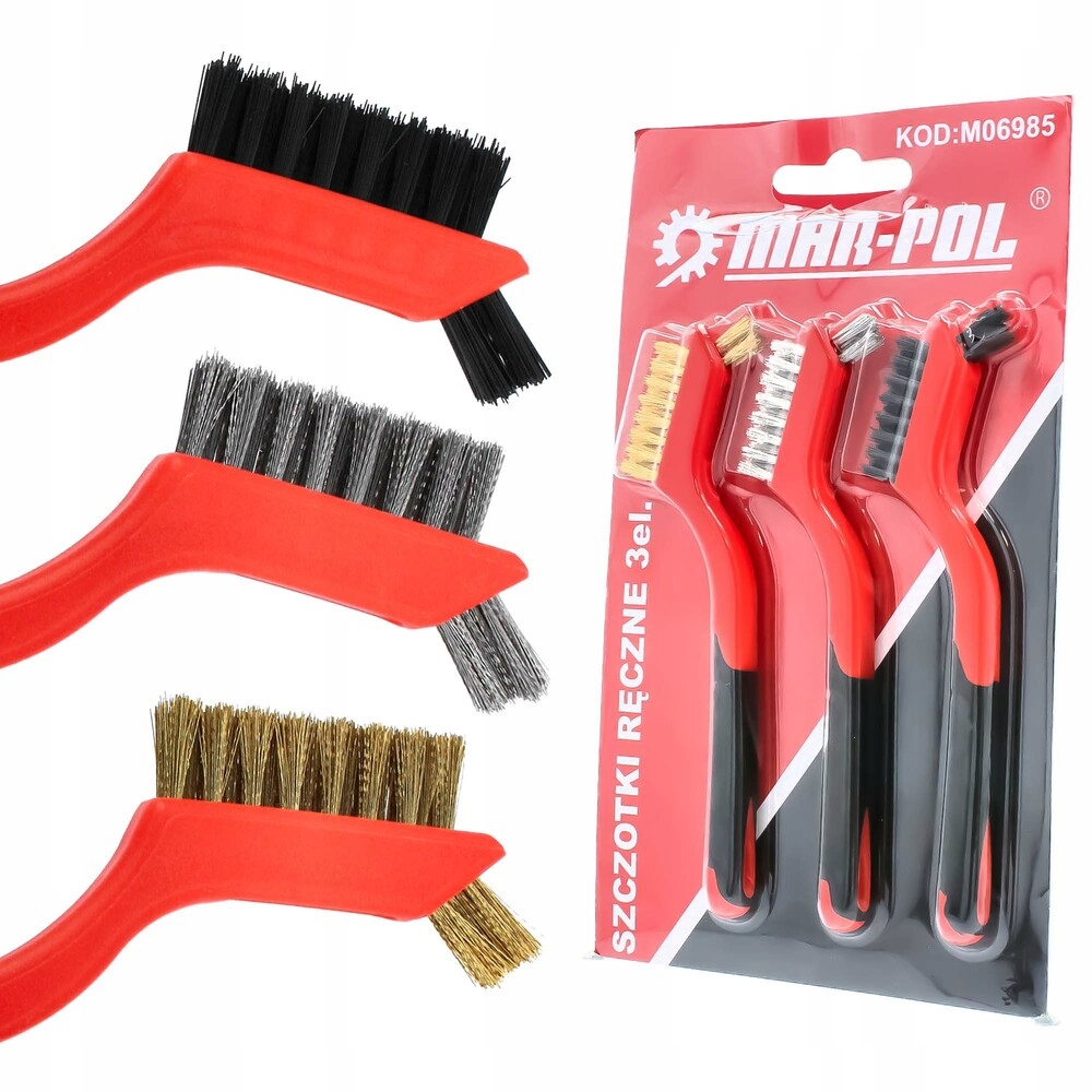✅ KOMPLETNY ZESTAW - znajdziesz w nim aż 3 szczotki, każdą z innego tworzywa do różnych zastosowań. ✅ UNIWERSALNE - z pomocą szczotek usuniesz rdzę, farbę, pyły, kurz i inne lekkie zabrudzenia. ✅ POLSKI PRODUCENT - produkt stworzony jest przez polską firmę MAR-POL, która stawia na jakość. ✅ WYJĄTKOWO TRWAŁE - szczotki wykonano z wysokiej jakości materiałów, dlatego można je eksploatować przez długi czas. ✅ SPECJALNY KSZTAŁT - specyficzna konstrukcja szczotki pozwala na dokładne czyszczenie przy użyciu mniejszej siły. Poszukujesz rozwiązania, dzieki któremu pozbędziesz się z powierzchni rdzy, farby lub innych, lekkich zabrudzeń? Pomoże Ci w tym praktyczny komplet 3 szczotek. Każda z nich została stworzona z różnego materiału. Szczotki zostały wykonane z wysokiej jakości surowców, dzięki temu są wyjątkowo trwałe i posłużą Ci przez długi czas. Specjalny kształt każdej z nich pozwala skutecznie i dokładnie wyczyścić powierzchnię przy użyciu mniejszej siły. Producentem szczotek jest MAR-POL - polska firma zajmująca się produkcją narzędzi warsztatowych i garażowych. Tej marce zaufało tysiące klientów na całym świecie, co potwierdza, że oferowane przez nią produkty gwarantują wysoką jakość i długą eksploatację. Zestaw zawiera 3 szczotki: Szukasz innych szczotek do czyszczenia, które mógłbyś wykorzystać ze szlifierką lub wiertarką? Do najważniejszych właściwości produktu należą: