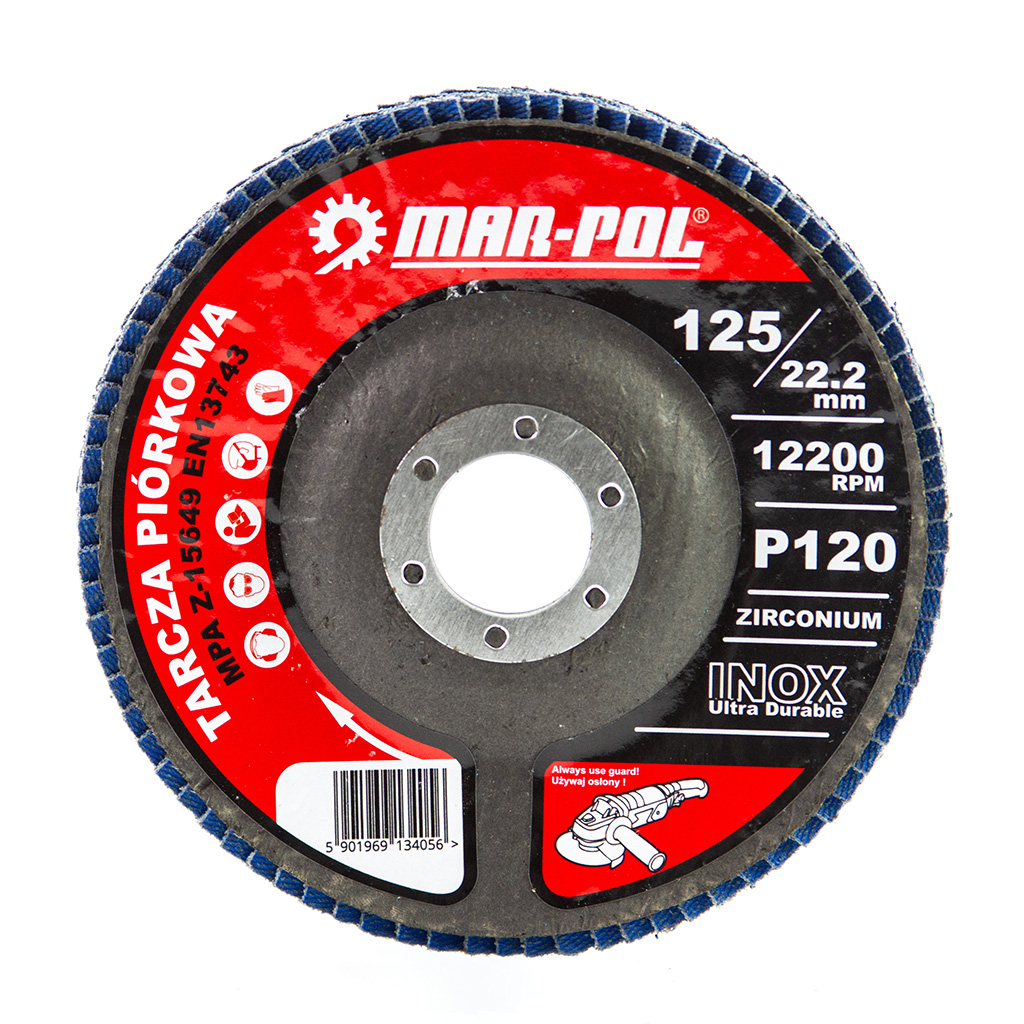 Tarcze ścierne MAR-POL są trwalsze i umożliwiają szybką, łatwą i ekonomiczną pracę. Bezpieczeństwo pracy odgrywa przy tym bardzo istotną rolę: tarcze ścierne i tnące MAR-POL spełniają międzynarodowe normy i wymogi w zakresie bezpieczeństwa. Na wysoką jakość ma wpływ staranny dobór i połączenie wysokogatunkowych surowców.》》》 TARCZA LISTKOWA DO SZLIFOWANIA CYRKONOWA INOX CYRKON 125mm P120 M07985 《《《