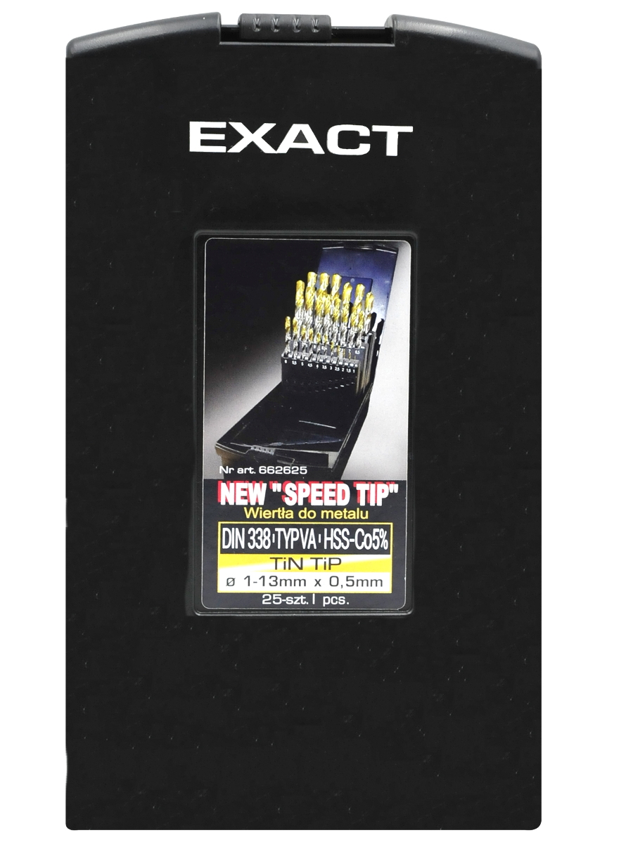 》》》 ZESTAW WIERTEŁ DO METALU 25szt 1-13mm SPEED HSS-Co5% DIN 388 TYP VA EXACT 662625 《《《