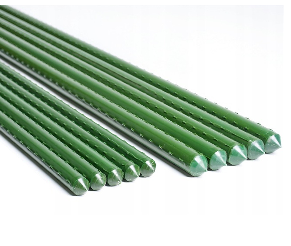 Solidne i estetyczne tyczki ogrodowe idealne do podpierania roślin pnących, warzyw i kwiatów. Wykonane z metalu powlekanego tworzywem sztucznym, odporne na działanie warunków atmosferycznych i korozję. Dzięki swojej sztywności i uniwersalności znajdą zastosowanie w każdym ogrodzie – zarówno przy pomidorach, jak i delikatnych kwiatach. ✔️ Powlekana stal – zapewnia trwałość i pewne podparcie nawet dla cięższych roślin. ✔️ Odporność na warunki atmosferyczne – specjalna powłoka chroni przed wilgocią, deszczem i słońcem. ✔️ Zaostrzony koniec ułatwia montaż – umożliwia szybkie i łatwe wbicie w ziemię bez użycia dużej siły. ✔️ Wyprofilowane wypustki na całej długości – pomagają roślinom piąć się naturalnie i utrzymują je we właściwej pozycji. ✔️ Uniwersalne zastosowanie – doskonałe dla pomidorów, pnączy, kwiatów oraz warzyw. ✅ Specyfikacja: Pręt należy umieścić w ziemi obok rośliny oraz przywiązać do niej łodygę, w ten sposób zapewnimy doskonałą stabilizację i zabezpieczenie przed złamaniem nawet podczas wietrznej pogody. Specjalne zakończenie ułatwiaja wbijanie w twarde podłoże. Zielony kolor produktu idealnie komponuje się z roślinami, również jako dekoracja ogrodów, a wyprofilowane wypustki ułatwiają pięcie się rośliny. Poprzez połączenie tyczek z innymi elementami jak łączniki, klipsy, zapinki - można stworzyć ciekawą konstrukcję doskonale dopasowaną do indywidualnych potrzeb użytkownika.