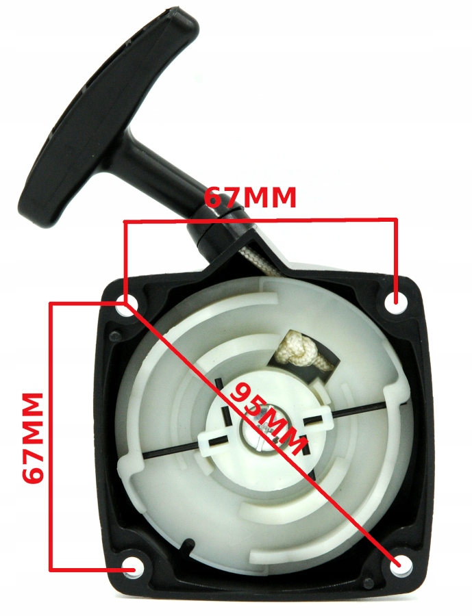 Rozrusznik ręczny kompletny, gotowy do pracy do kos spalinowych Dane techniczne: Przy wyborze proszę zwrócić uwagę na wygląd odbieraka, tak aby zakupiony szarpak pasował do silnika kosy.