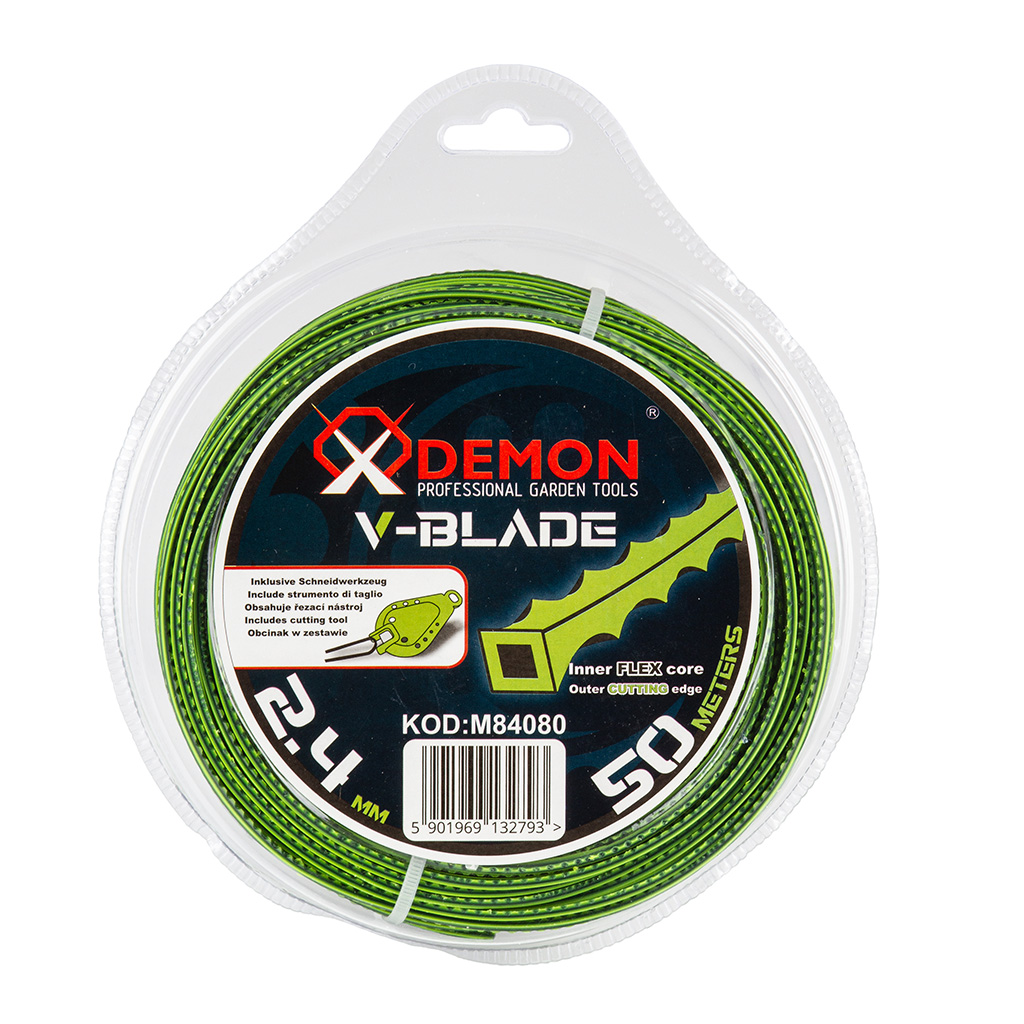 Najwyższej jakości żyłka tnąca V-BLADE do kos spalinowych. Stworzona z materiałów o wysokiej wytrzymałości i jakości, odporna na załamywanie się, strzępienie oraz łamanie przy oczku głowicy. Wysoką wydajność i dłuższą eksploatację zapewnia struktura żyłki, dzięki ostrym krawędziom zębów szybko pozbędziemy się chwastów, trawy i zarośli.》》》 ŻYŁKA ZĘBATA TNĄCA DO KOSY SPALINOWEJ PODKASZARKI DEMON V-BLADE 2.4mm 50m M84080 《《《