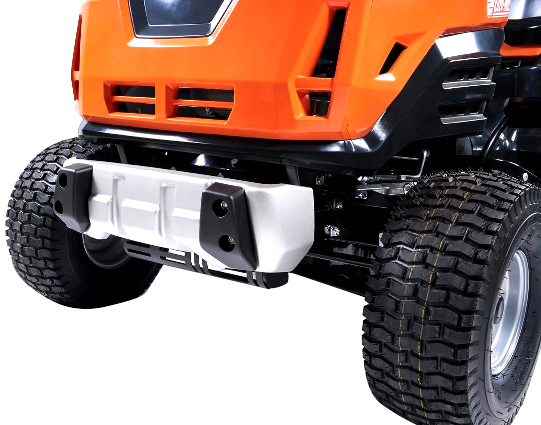 - ✔️ Szeroki przedni zderzak ze stali wysokiej wytrzymałości, który chroni kosiarkę w przypadku przypadkowego uderzenia.