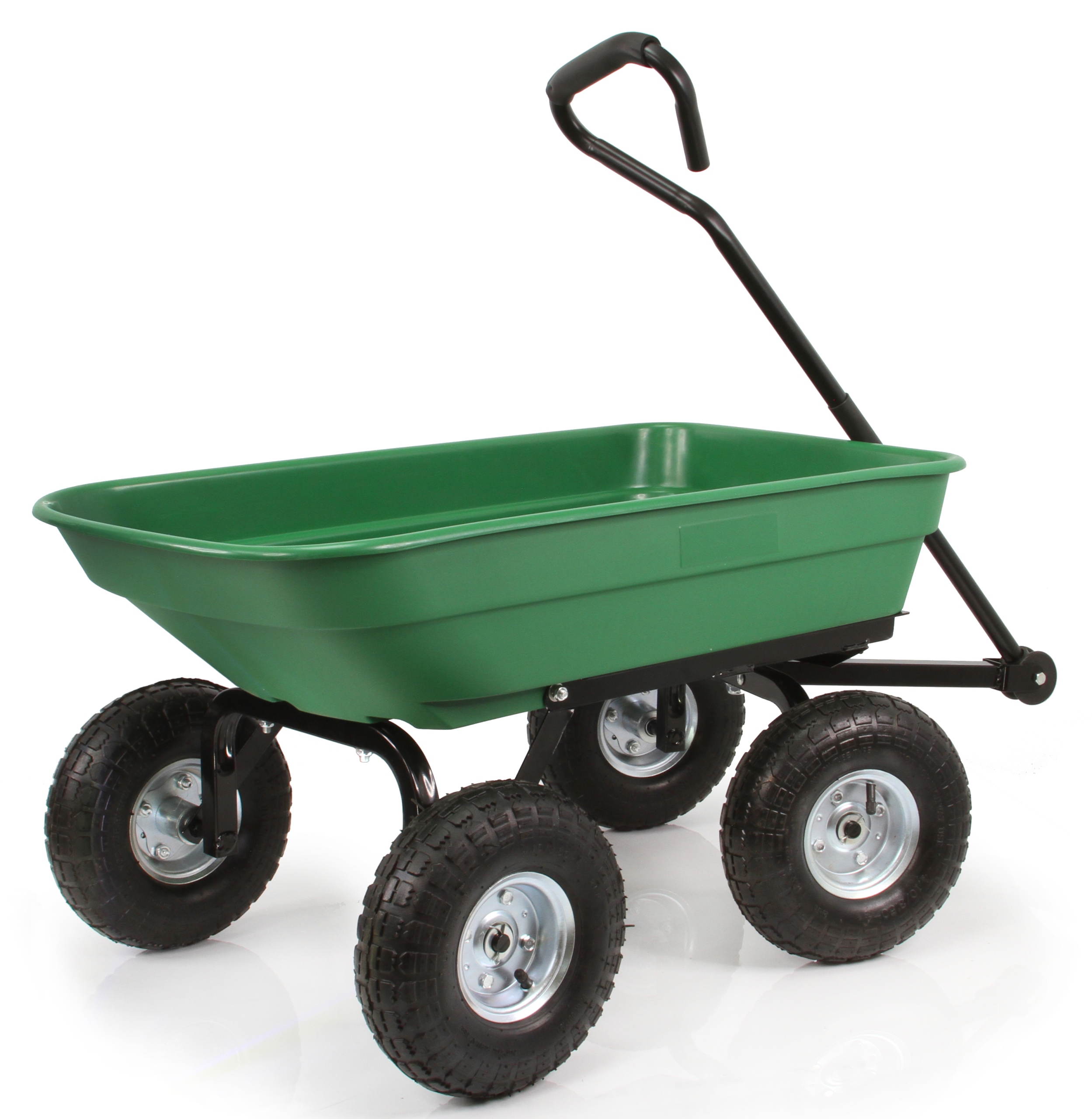 ✅Jeden produkt 2 funkcje: wózek i taczka ✅Wytrzymałość aż do 150 kg ✅Duża pojemność do ok. 55 L ✅Mocna konstrukcja wykonana ze stali ✅Pojemna plastikowa skrzynia ✅Pneumatyczne koła o dużej wytrzymałości ✅Opona bieżnikowana, która zapewnia dobrą przyczepność na różnym podłożu ✅Funkcja wywrotki ✅Skrętna przednia oś + przegubowy uchwyt ✅Antypoślizgowa, miękka oraz ergonomiczna rączka pokryta pianką ✅W ogrodzie - wózek ogrodowy jest idealnym narzędziem do transportowania różnych materiałów, takich jak ziemia, kamienie, gałęzie, drewno, narzędzia ogrodowe, itp. ✅Na działce - jeśli posiadamy działkę, wózek może być przydatny do przewozu różnych przedmiotów, takich jak narzędzia, meble ogrodowe, drewno na ognisko czy meble do kempingu. ✅Na budowie - transporter ogrodowy może być również używany na budowie do przewożenia materiałów budowlanych, takich jak cegły, bloczki, zaprawy murarskie, itp. ✅W magazynie - może być przydatny również w magazynie do transportowania paczek, skrzyń, itp. ✅W gospodarstwie rolnym - wózek ogrodowy może być wykorzystywany do przewozu paszy, narzędzi i różnych materiałów w gospodarstwie rolnym. ✅Na plaży - może być również wykorzystywany na plaży do przewozu parasoli, ręczników, sprzętu plażowego i innych przedmiotów. Zastępca Taczki Wózek ogrodowy posiada funkcję wywrotki, która pozwala w kilku sekund opróżnić przyczepkę. Ogromnie przydatna funkcja pozwalająca na przyspieszenie prac z wykorzystaniem wózka. Raz dwa opróżnisz załadowany wózek. Funkcja wywracania jest prosta w obsłudze, wystarczy pociągnąć za wygodną rączke którą bez problemu podniesiemy lub opuścimy kosz. Transporter posiada sprężynowy mechanizm blokady, który zabda o bezpieczeństwo podczas użytkowania Proste Manewrowanie Nasz wózek posiada skrętną oś, która ułatwia manewrowanie wózkiem z nawet dużym obciążeniem, zwłaszcza na wąskich ścieżkach i zakrętach. Dzięki zastosowaniu stalowej konstrukcji użytkownik ma pewność, że oś i cała konstrukcja wózka wytrzyma duże obciążenia. Gumowe, pompowane i łożyskowane koła zapewniają stabilność i równowagę w czasie przewożenia przedmiotów, a także ułatwiają jazdę po nierównej powierzchni. Oferowane koła z łatwością pokonają praktycznie każdy rodzaj nawierzchni. Gumowe bieżnikowane opony zapewniają dobrą przyczepność a dętka amortyzację. Konstrukcja kół oparta jest na stalowych ocynkowanych felgach (odpornych na korozję). Ergonomiczny uchwyt za który chwyta osoba ciągnąca wózek pokryty jest miękką antypoślizgową pianką, dbającą o komfort użytkowania. Użytkownik może zapomnieć o odciskach na dłoniach !