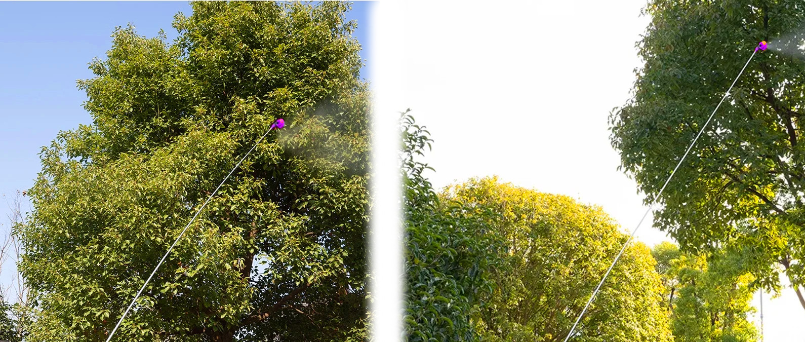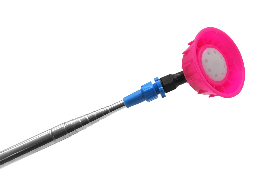 Posiada 8-stopniową regulację długości od 62cm do 420cm. Dzięki temu gwarantuje dostęp zarówno do wysokich powierzchni pionowych, jak i odległych- poziomych (duży promień zasięgu). Ułatwia wykonywanie zabiegów w koronach drzew. Końcówka lancy wygięta jest pod kątem 45°, co znacznie ułatwia aplikację cieczy. Zestaw adapterów zapewnia możliwość podłączenia do większości opryskiwaczy dostępnych na rynku. Duża dysza rozpylająca , ośmiostrumieniowa. średnica gwintu (GWINT WEWNĘTRZNY) około 17mm średnica zewnętrzna kielicha 74mm
