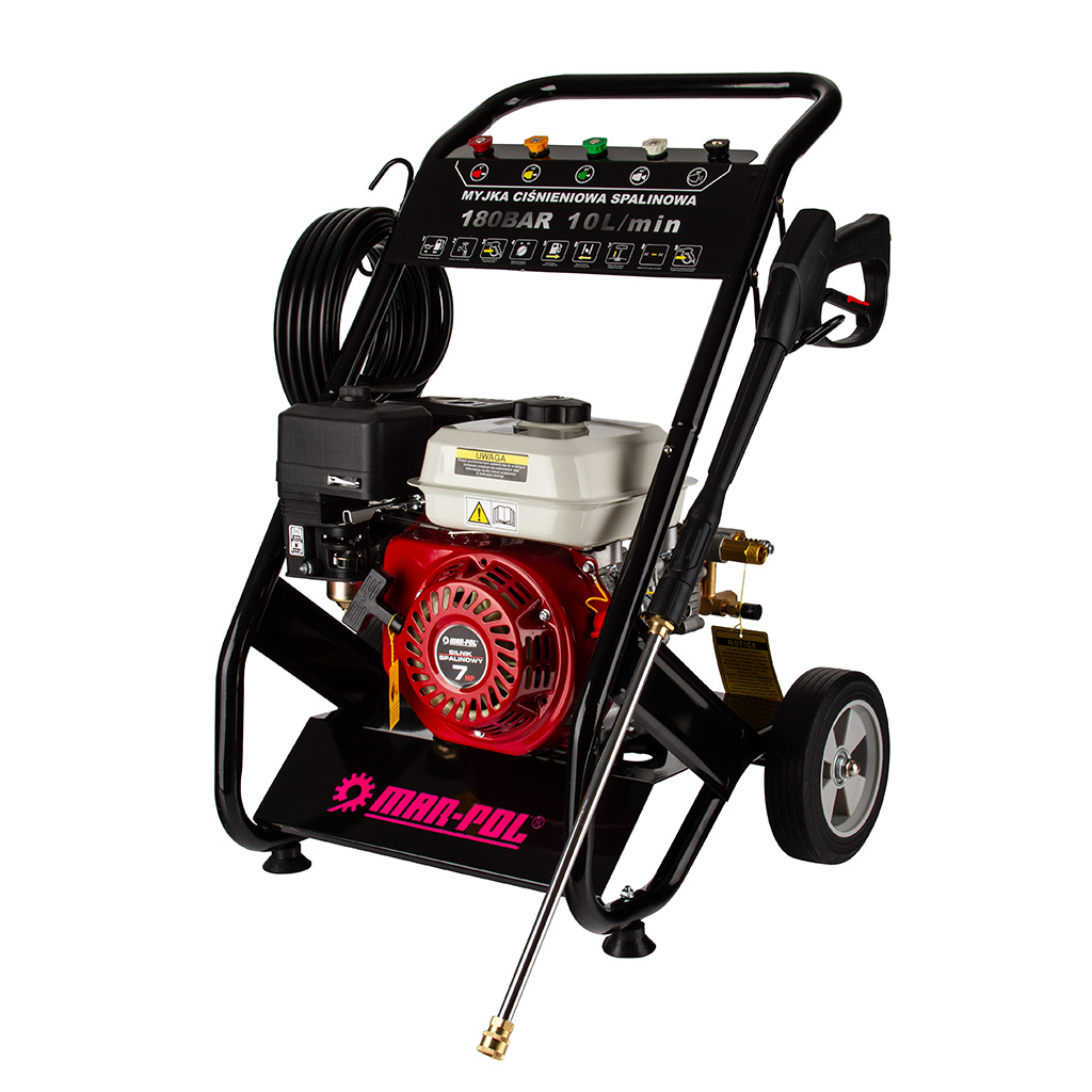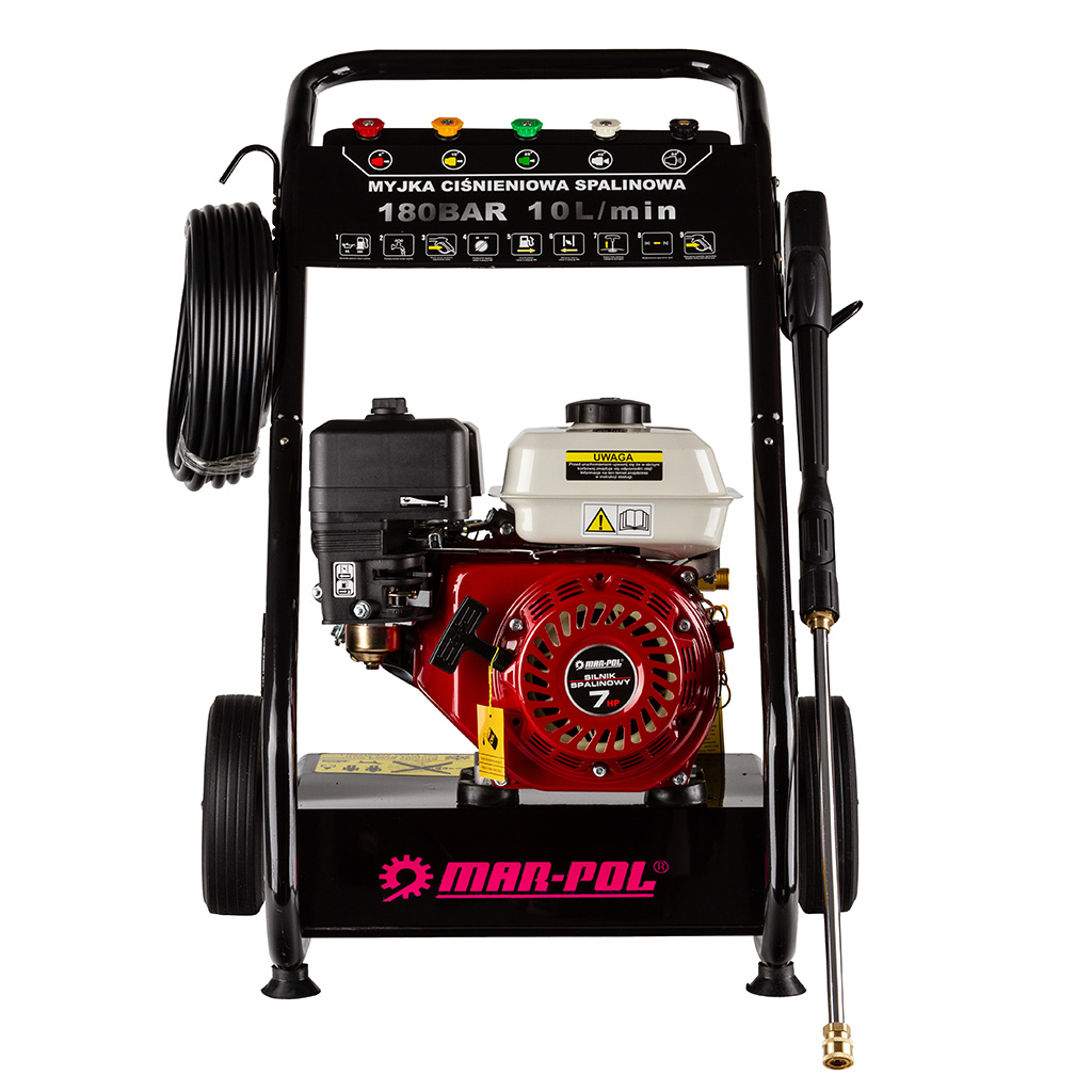 MYJKA SPALINOWA CIŚNIENIOWA MOSIĘŻNA POMPA 180-260bar 7KM 10M węża + 5 DYSZ