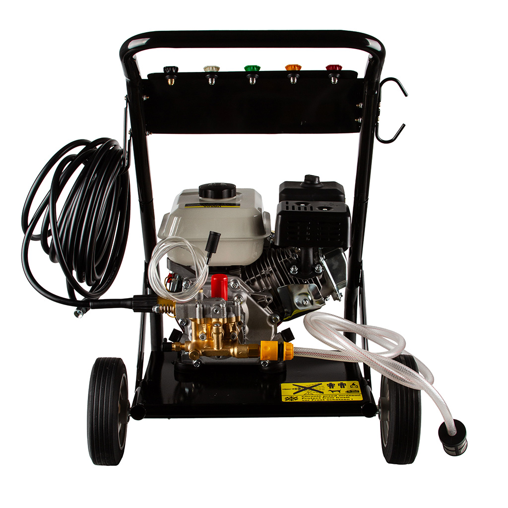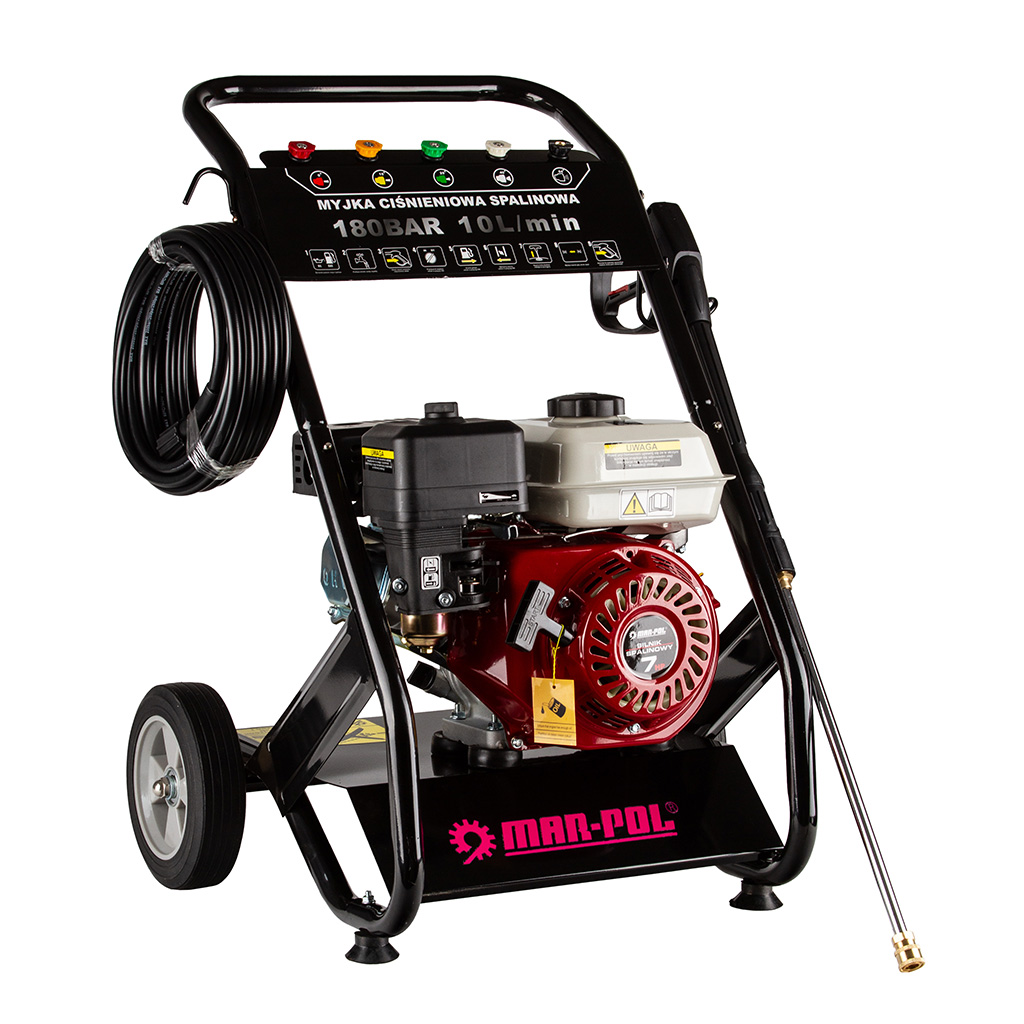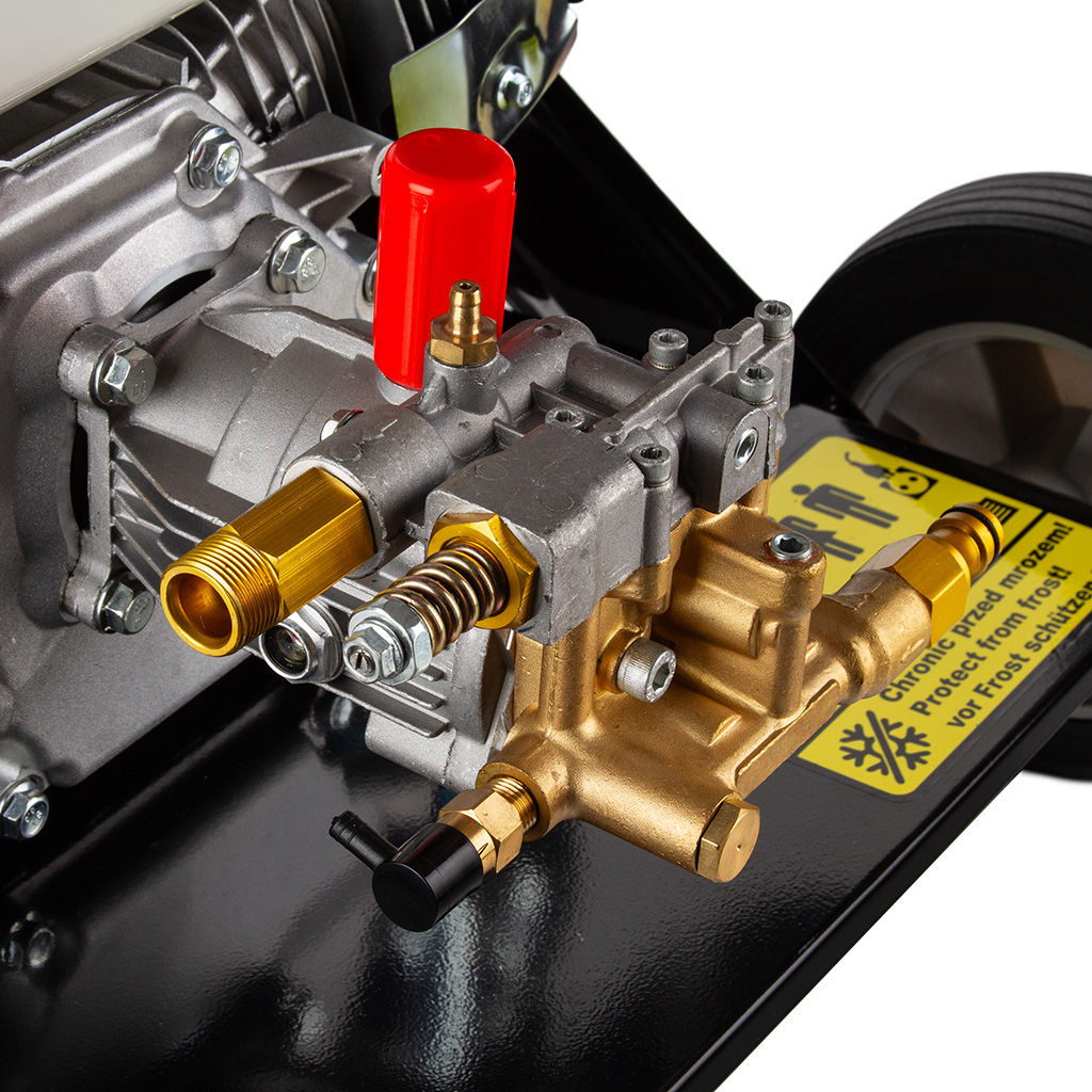 Profesjonalna myjka wysokociśnieniowa spalinowa to wydajne i niezawodne urządzenie przeznaczone do najbardziej wymagających prac czyszczących. Wyposażona w solidną mosiężną pompę, generuje maksymalne ciśnienie aż 260 bar oraz wysoki przepływ wody 600 l/h, co gwarantuje szybkie i skuteczne usuwanie nawet uporczywych zabrudzeń. Myjka obsługuje wodę o temperaturze do 60°C, dzięki czemu możliwe jest efektywne czyszczenie również ciepłą wodą. Zintegrowane złącze do zasysania detergentu pozwala na dokładniejsze mycie i osiągnięcie doskonałych rezultatów bez dodatkowych akcesoriów. Urządzenie napędzane jest wydajnym silnikiem spalinowym o pojemności 210 cm³, co zapewnia pełną niezależność od zasilania elektrycznego. Dzięki temu myjka sprawdzi się wszędzie tam, gdzie dostęp do prądu jest ograniczony lub niemożliwy. Idealna zarówno do użytku domowego, jak i profesjonalnego – w gospodarstwach rolnych, firmach usługowych oraz przemyśle.