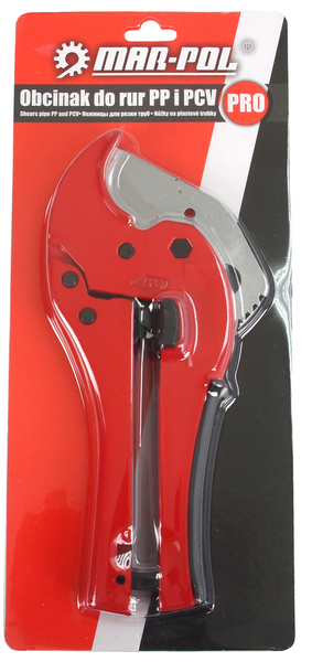 Przeznaczenia do cięcia rur wykonanych z tworzyw sztucznych. Nożyce zapewniają wygodna prace poprzez zastosowanie systemu zwalniającego ostrze. Posiadają specjalny przycisk który po naciśnięciu kciukiem zwalnia mechanizm i nóż wraca do pozycji rozwartej. Natomiast szeroka budowa szczęk nożyc pozwala na dobre ułożenia rury co zapewnia precyzyjne cięcia pod kątem prostym. Nożyce wykonane z aluminium.》》》 NOŻYCE DO CIECIA RUR OBCINAK DO RUR PP i PCV PRO 3-42mm M55927 《《《