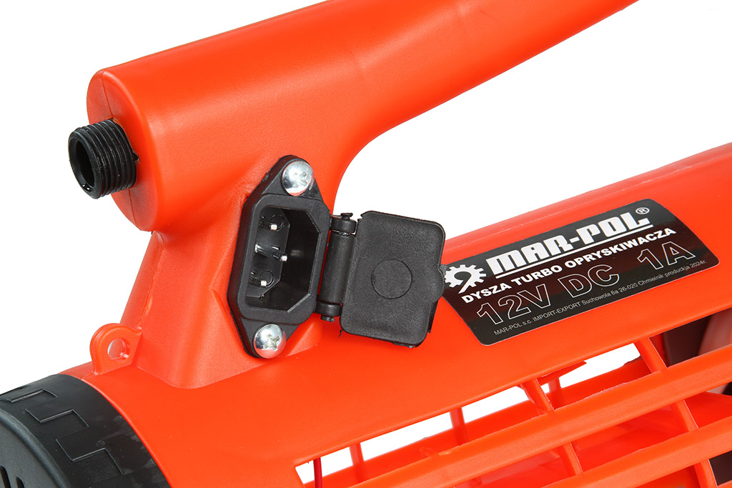 Elektryczna dysza - do podłaczenia do opryskiwacza akumulatorowego w celu zwiększenia zasięgu oraz rodzaju oprysku. Wentylator rozpylający zasilany jest akumulatorem z opryskiwacza. W rączce znajduje się gwint zewnętrzny 17mm do którego przykręcamy wąż z opryskiwacza (w zestawie nie ma tego węża, są przy opryskiwaczach). W zestawie znajduje się przewód zasilający łączący turbo dyszę z opryskiwaczem. Posiada możliwość regulacji rozproszenia strumienia przez pokręcenie dyszy , zapewniając efektywny oprysk i wszechstronne zastosowanie. Dysze rozpylająca jest regulowana - od delikatnej mgiełki do silnego strumienia. Działanie TURBO DYSZY porównywalne jest do pracy opryskiwacza spalinowego. UWAGA - przed podłączeniem DYSZY do OPRYSKIWACZA prosimy upewnić się , że przewody wewnątrz dyszy do podłączenia akumulatora nie stykają się !!! Turbo dysza posiada możliwość bezpośredniego podłączenia akumulatora. Dzięki temu możemy używać jej bez opryskiwacza np. jako dmuchawy do liści. Aukcja dotyczy samej dmuchawy, bez opryskiwacza i akumulatora. PASUJE DO WIĘKSZOŚCI OPRYSKIWACZY AKUMULATOROWYCH DOSTĘPNYCH NA RYNKU BASS POLSKA BP-8616 BP-8617 BP-8620 BP-8627 BP-8629 BP-8631 BP-8632 BP-8633 MAR-POL M80203 M80204 M80202 M80205 M80210 GEKO G73251 G73252 G73217 G73216