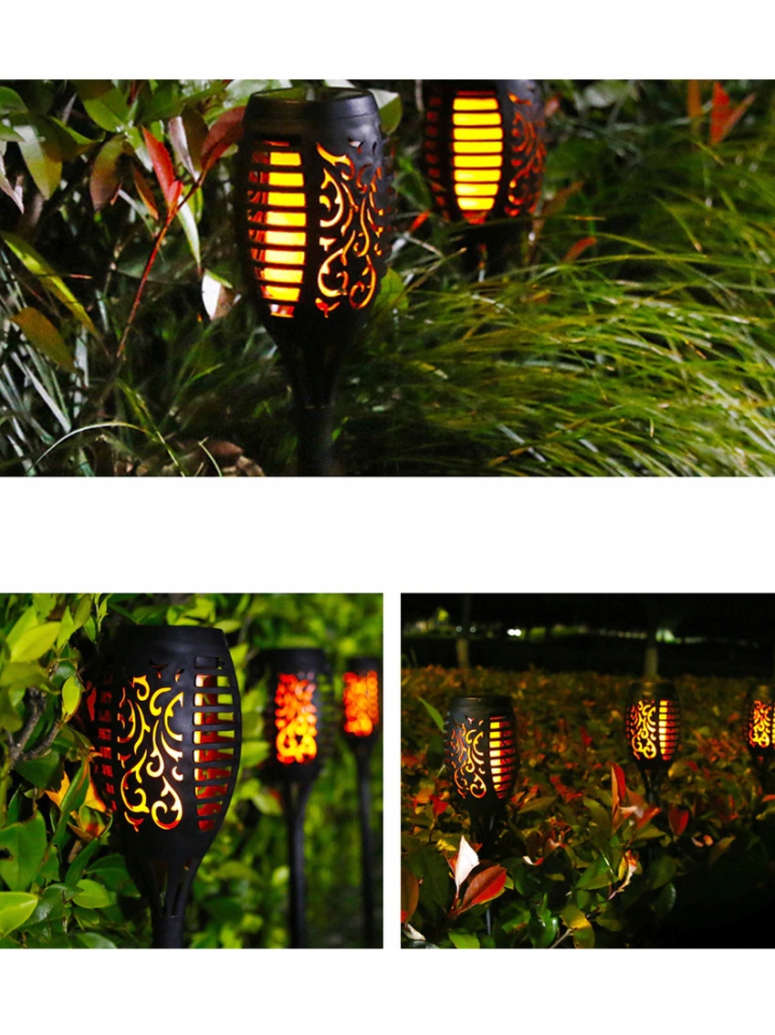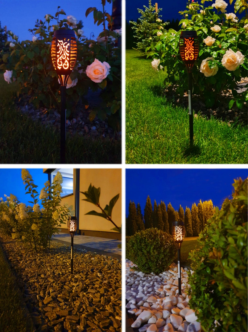 Lampy LED Solarne to produkty z przeznaczeniem na montaż zewnętrzny np. w ogrodzie, wystarczy wbić lampę w pożądanym miejscu - nie wymaga źródła prądu. Wyposażona w panel słoneczny oraz czujnik zmierzchu. Dzięki lampie solarnej można oświetlać ścieżki, ogród, bramy murki czy oczka wodne. Piękny efekte imitacji płomienia, który wprawia w przyjemny nastrój. ✅ LAMPA OGRODOWA LED Z PANELEM SOLARNYM Wysoka jakość materiałów jak i procesu produkcyjnego przekłada się na solidną jakość produktu. Oprawa jest odporna na niekorzystne warunki atmosferyczne dzięki stopniowi ochrony IP44.