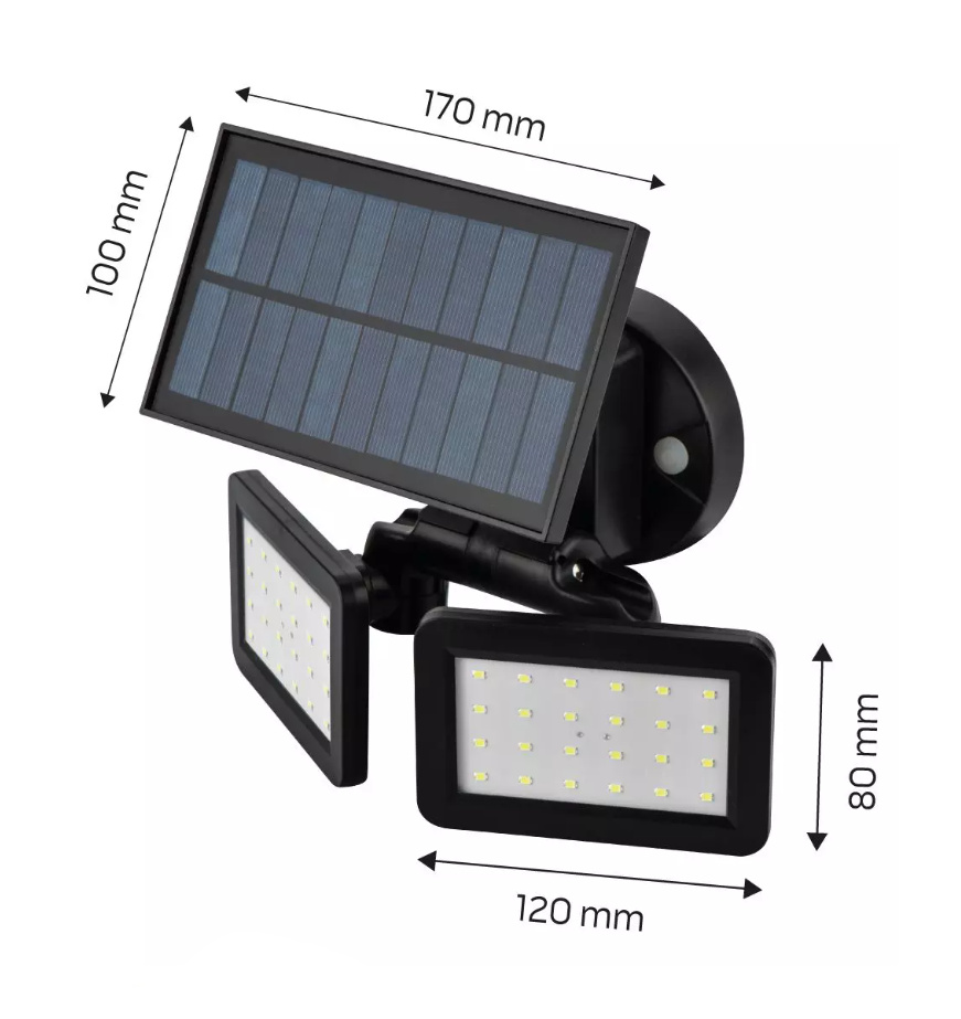 Praktyczna i ekologiczna lampa solarna ścienna od marki NEO, wyposażona w fluorescencyjną diodę SMD LED 450 lumenów. Urządzenie posiada przydatny czujnik ruchu, działający do 10 metrów oraz w obszarze 100° kąta przechwytywania. To komfortowe rozwiązanie dla osób potrzebujących światła wyłącznie wtedy, gdy ktoś przebywa na zewnątrz. Dzięki wbudowanemu czujnikowi zmierzchu, lampa uruchamia się tylko po zmroku. Funkcjonuje w oparciu o akumulator litowo-jonowy 3,7 V 3000 mAh i potrzebuje od 6 do 8 godzin do pełnego ładowania. Czas pracy wynosi 6 godzin. Korpus lampy został wykonany z wysokiej jakości tworzywa sztucznego ABS+PC. Bezpieczeństwo potwierdza również stopień ochrony IP65.