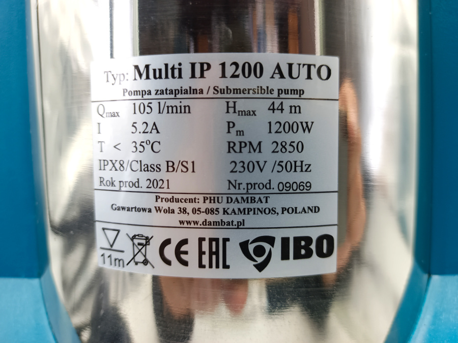 》》》POMPA DO WODY ZATAPIALNA ZANURZENIOWA IBO 230V MULTI-IP-1200 AUTO 《《《