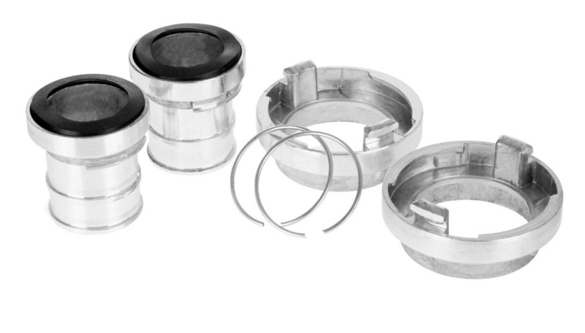 Szybkozłączka do węża strażackiego 2" 52 mm 2 sztuki Łączniki przeznaczone do połączeń szybkozłącznych odcinków węży z nasadami pomp, hydrantów, rozdzielaczy, zasysaczy i prądownic. Składają się z tulei, korony, uszczelki i pierścienia oporowego. ✅ Cechy produktu :