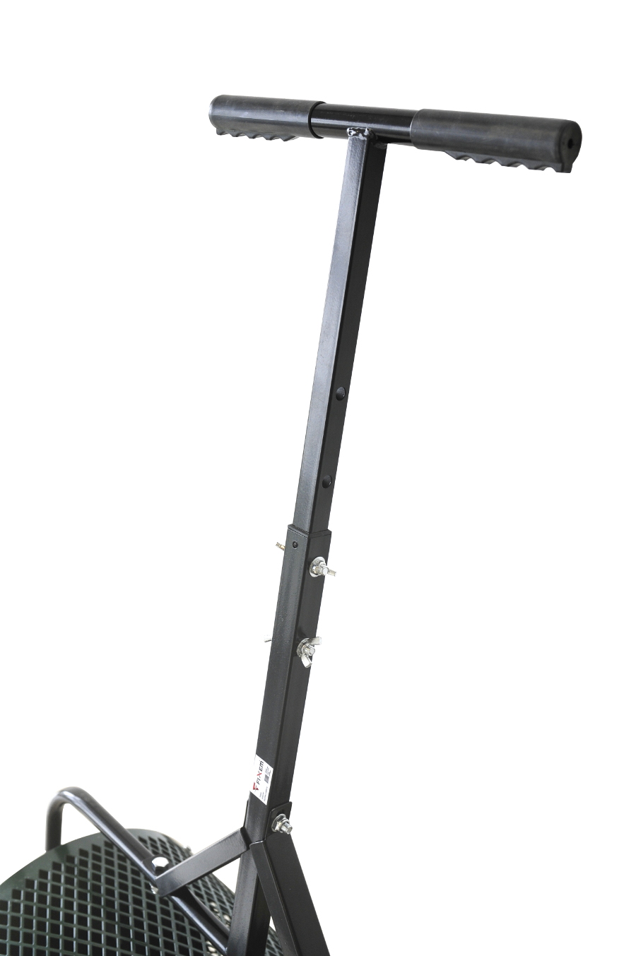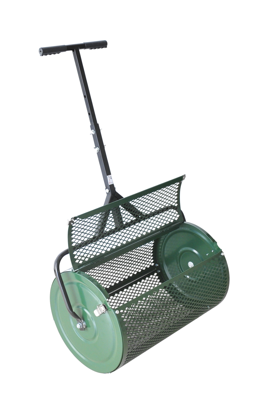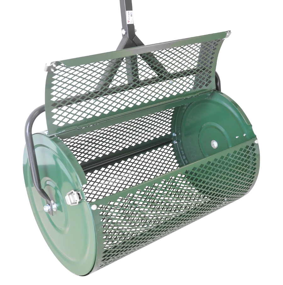 Ręczny rozsiewacz ogrodowy przeznaczony do równomiernego rozsiewania kompostu. Składa się z metalowego bębna z perforowaną siatką o wymiarach 600x400mm, który obraca się podczas pchania urządzenia. Rozsiewacz charakteryzuje się dużą pojemnością zbiornika wynoszącą 75 litrów, co pozwala na jednorazowe zaaplikowanie znacznych ilości nawozu, kompostu, torfu lub obornika. Dzięki temu ogranicza potrzebę częstego uzupełniania materiału, co czyni go doskonałym rozwiązaniem do pracy na rozległych trawnikach, w dużych ogrodach i innych terenach zieleni. Dzięki kompaktowym wymiarom i opcji zawieszenia na ścianie, rozsiewacz można łatwo przechowywać nawet w niewielkich przestrzeniach. To wygodne i oszczędzające miejsce rozwiązanie Rozsiewacz trawnika to przyjazna dla środowiska alternatywa dla tradycyjnych nawozów. Dzięki temu rośliny otrzymują potrzebne składniki odżywcze w sposób zrównoważony i bezpieczny dla środowiska. Regularne stosowanie takich materiałów poprawia strukturę gleby, zwiększa jej żyzność i wspiera rozwój zdrowego systemu korzeniowego. Boczne zatrzaski na bębnie skutecznie zapobiegają przypadkowemu otwarciu pokrywy w trakcie pracy, co zapewnia stabilne działanie rozsiewacza. Dzięki temu nawóz jest aplikowany równomiernie, bez niepotrzebnych strat i ryzyka uszkodzenia sprzętu. Umożliwiają również szybkie otwieranie i zamykanie bębna w celu napełnienia bądź czyszczenia. Regulowany uchwyt w kształcie litery „T” został zaprojektowany z myślą o maksymalnej wygodzie użytkownika. Regulacja uchwytu w zakresie 103-123cm. Ergonomiczna forma zapewnia pewny i komfortowy chwyt, a możliwość dopasowania wysokości eliminuje konieczność schylania się. Dzięki temu praca z rozsiewaczem staje się lżejsza, bardziej precyzyjna i przyjemna – nawet podczas dłuższego użytkowania.