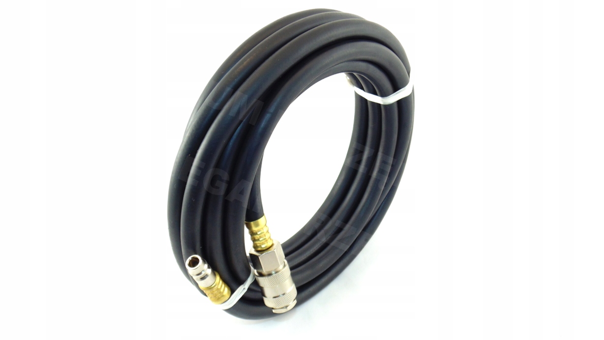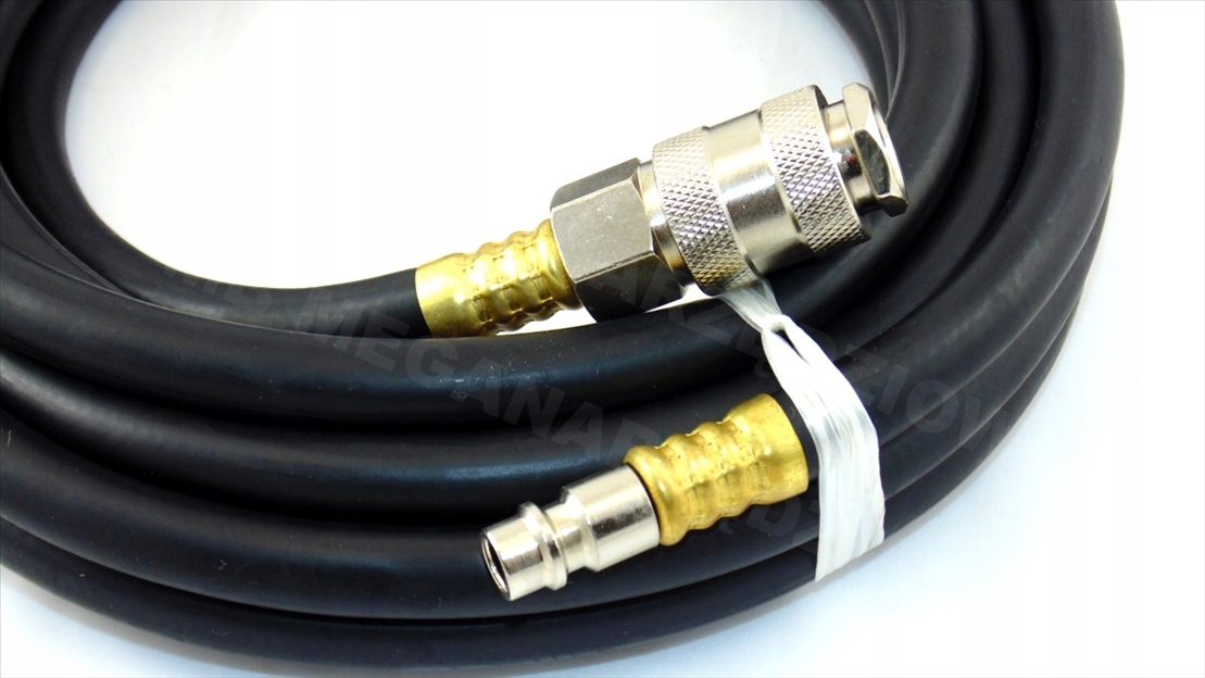 PRZEWÓD PNEUMATYCZNY GUMOWY 6x13mm 10Mb Profesjonalny gumowy wąż pneumatyczny służący do zasilania wszelkiego rodzaju narzędzi pneumatycznych w tym szlifierek, pistoletów lakierniczych, młotków pneumatycznych, podnośników pneumatycznych, itp. Z łatwością można nawinąć go na bęben, czego nie można zrobić w przypadku węży spiralnych. Wąż wykonany jest z elastycznej wysokogatunkowej gumy odpornej na olej co sprawia, że jest niezastąpiony w warsztatach samochodowych. Złącze o zastosowaniu uniwersalnym TYP 26. Zamknięty korpus zewnętrzny zabezpiecza części wewnętrzne przed zanieczyszczeniami.Poprzez zastosownie hartowanych kołków ryglujących możliwa jest współpraca z narzędziami wyposażonymi we wtyczki stalowe.Bardzo przystępna cena.Dzięki zastosowaniu hartowanych kołków ryglujących bardzo trwałe w użyciu. DANE TECHNICZNE: Numer katalogowy: M82101