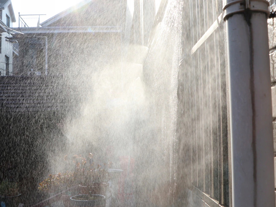Kurtyna doskonale nawilża roślinność w ogrodzie i tunelach foliowych oraz daje przyjemny chłód w najbardziej upalne dni. Jest bardzo łatwa w montażu - wystarczy podłączyć do węża ogrodowego lub kranu aby poczuć natychmiastowe działanie. Wysokiej jakości dysze wytwarzają bardzo lekką i bardzo delikatną kurtynę wodną, która kontroluje temperaturę otoczenia i pozwala na jej skuteczne obniżenie. ✅ Zestaw zawiera: