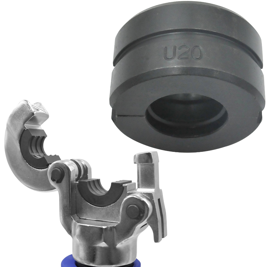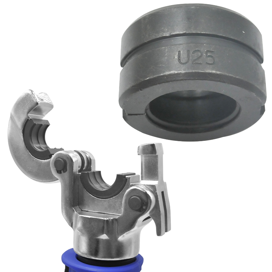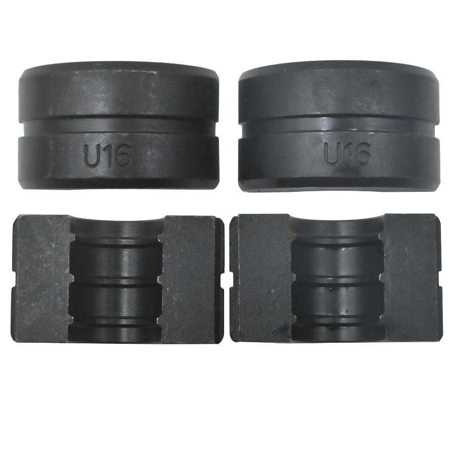 Kamienie typu U do zaciskarek do rur. Dostępne w rozmiarach - 16/20/25/32. Ten komplet czterech matryc zaciskowych doskonale nadaje się do użytku z zaciskarkami hydraulicznymi. Elementy wykonano z wysokogatunkowej, odpornej na zużycie stali, a ich staranne wykończenie umożliwia szybkie i dokładne dopasowanie do różnych typów rur, co przekłada się na wysoką jakość zacisku. Zróżnicowane rozmiary matryc pozwalają pracować z rurami o wielu średnicach, znacząco ułatwiając wykonywane zadania.
