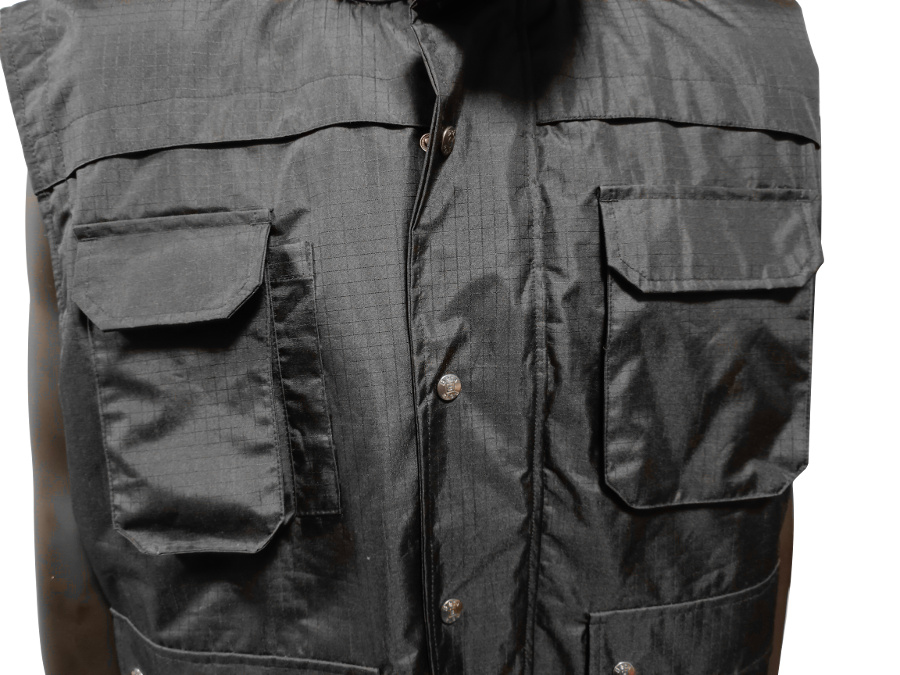 Kamizelka z nylonu RipStop 7575A rozmiar XXL firmy BETA to wysokiej jakości, wodoodporna watowana kamizelka na podszewce, wykonana z powlekanego PCW poliestru o odporności na przemakanie 200 g/m2. Dla wygody użytkowania została wyposażona w wiele kieszeni – w tym kieszeń na telefon komórkowy, kieszenie na piersiach zapinane na rzepy, kieszeń na długopis zaś w talii znajdują się pionowe kieszenie pozwalające na ogrzanie rąk. Przednie kieszenie kamizelki są zapinane na zatrzaski, co zabezpiecza przechowywane w nich narzędzia. Kamizelka z nylonu RipStop jest zapinana na zamek i napy.