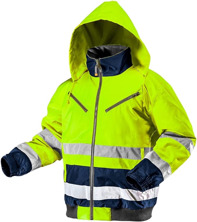 Ocieplana kurtka robocza NEO o intensywnej widzialności, wykonana z wysokiej jakości wytrzymałego materiału Oxford 300D. Kurtka o intensywnej widzialności to praktyczne rozwiązanie zwiększające bezpieczeństwo użytkownika, polegające na sygnalizowaniu jego obecności w każdych warunkach oświetlenia dziennego jak i w ciemności w oświetleniu światłami pojazdów. Ocieplane lekkim poliestrem, który zapewni komfort w mroźne dni. Gwarantem jakości jest certyfikat europejski oraz wykonanie zgodne z normą EN ISO 13688:2013. Elastyczny ściągacz w pasie oraz regulowany ściągacz na rękawach zapewniają dodatkową ochronę przed zimnem i wiatrem. Solidne, zapinane na zamek kieszenie bezpiecznie przechowają nasze rzeczy. Klejone szwy oraz materiał o wodoodporność 1000 mm pozwolą na pracę również w czasie deszczu Wykonane z trwałego, wodoodpornego materiału fluorescencyjnego oraz z elementów odblaskowych zapewniających widoczność odpowiadającą klasie 2, zgodnie z wymaganiami normy PN-EN ISO 20471:2013.