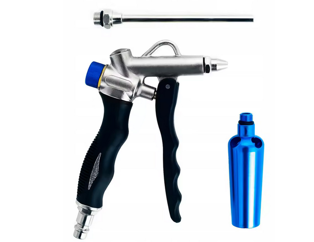 Pistolet do przedmuchiwania z dyszą Venturiego cechuje solidne wykonanie oraz sprawdzona konstrukcja. Pistolet jest wyposażony w dyszę Venturiego przeznaczoną do przedmuchiwania większych powierzchni oraz 2 dodatkowe dysze jedną dłuższą, drugą krótszą. Pistolet został wyposażony w regulację przepływu powietrza. ✅Cechy produktu ⭐ Wyposażony w dyszę Venturiego