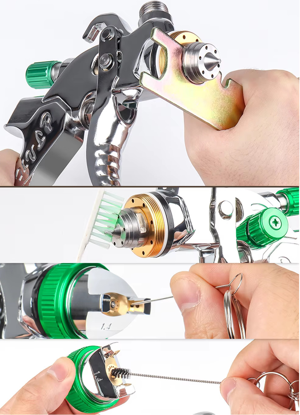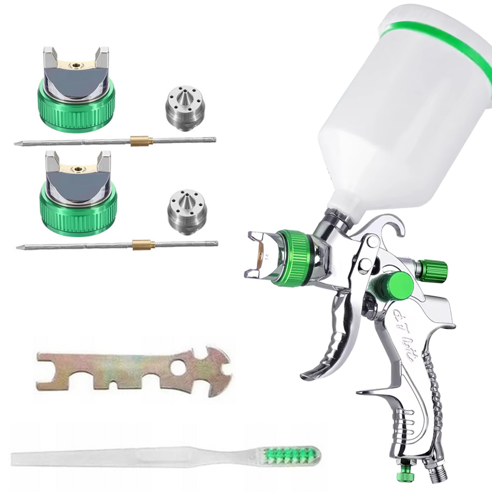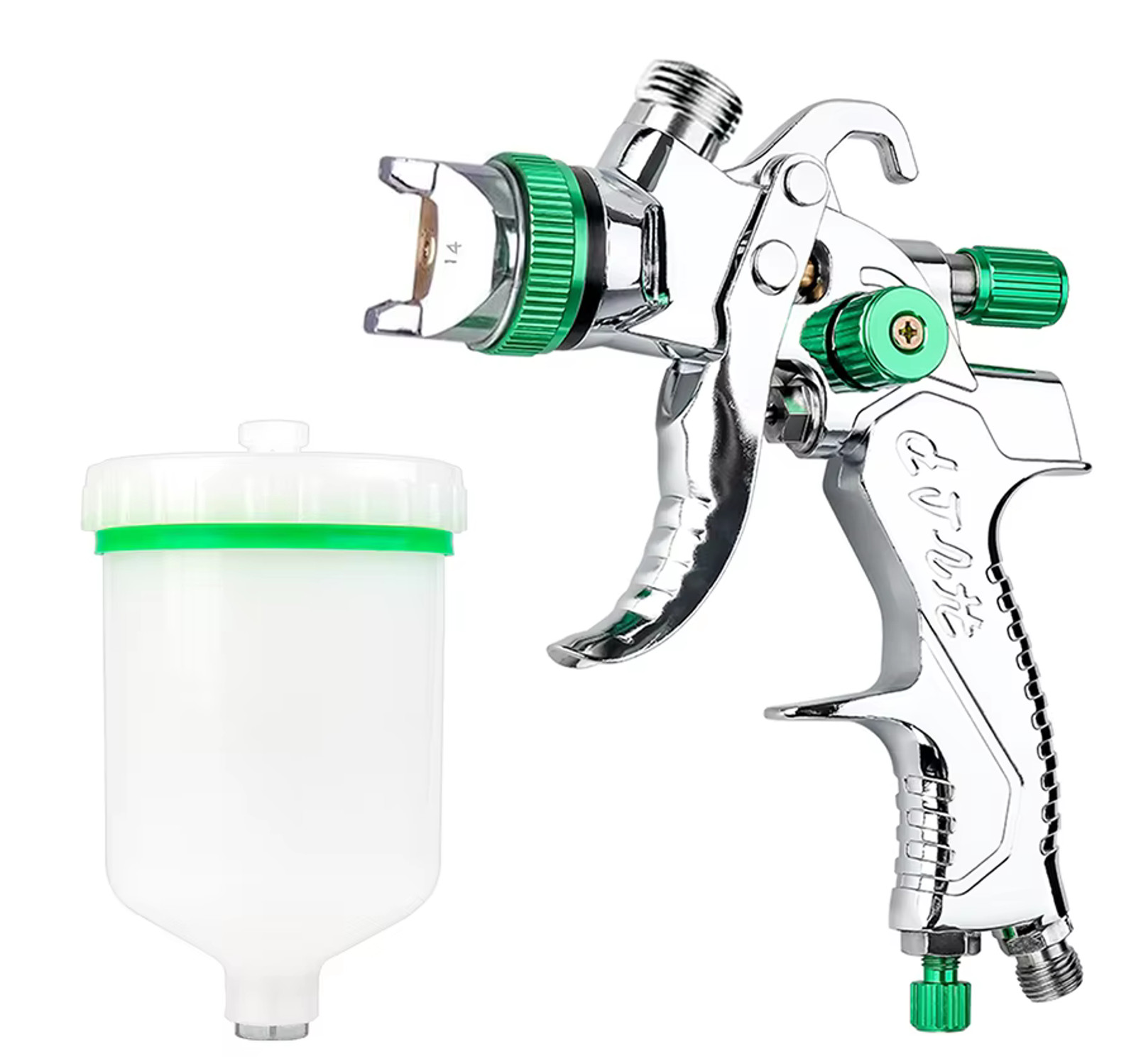 Pistolet lakierniczy wykonany w technologii HVLP - dostosowanej do niższego ciśnienia, co pozwala na oszczędności do 30% lakieru. Idealny zestaw zarówno dla profesjonalistów, jak i majsterkowiczów. Wyposażony we wszystkie niezbędne akcesoria, by zaspokoić potrzeby malowania różnych powierzchni, od samochodów po meble i ścian. ✅ Dane techniczne: Zawartość zestawu: Dwie dysze o rozmiarach 1,3mm i 2,0mm umożliwiają malowanie lakierem bazowym, podkładem oraz dużymi powierzchniami. Pistolet wyposażony w zawór regulacji przepływu farby, zawór kontroli szerokości natrysku oraz zawór regulacji ciśnienia powietrza, zapewnia pełną kontrolę nad procesem malowania. Czyszczenie i konserwacja pistoletu