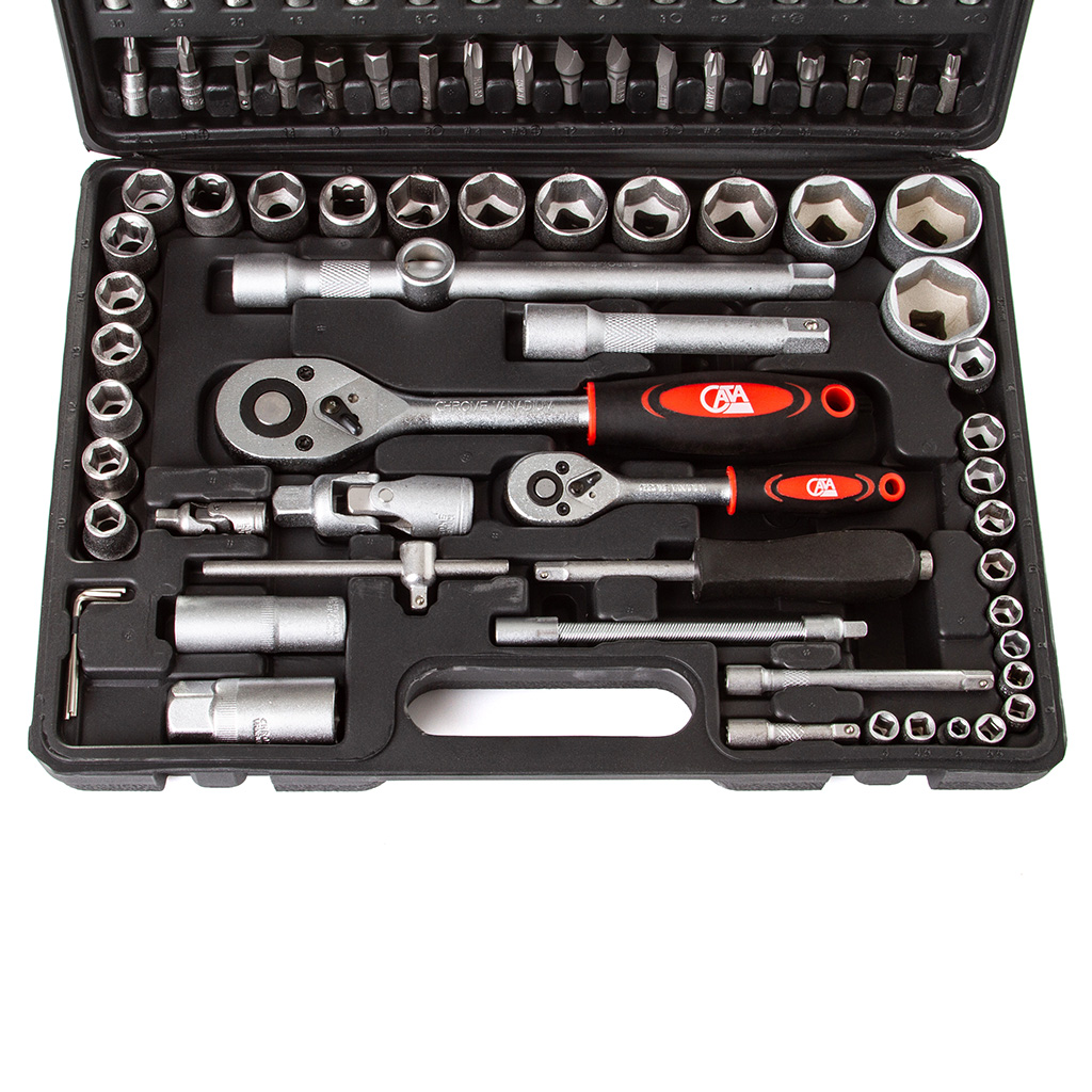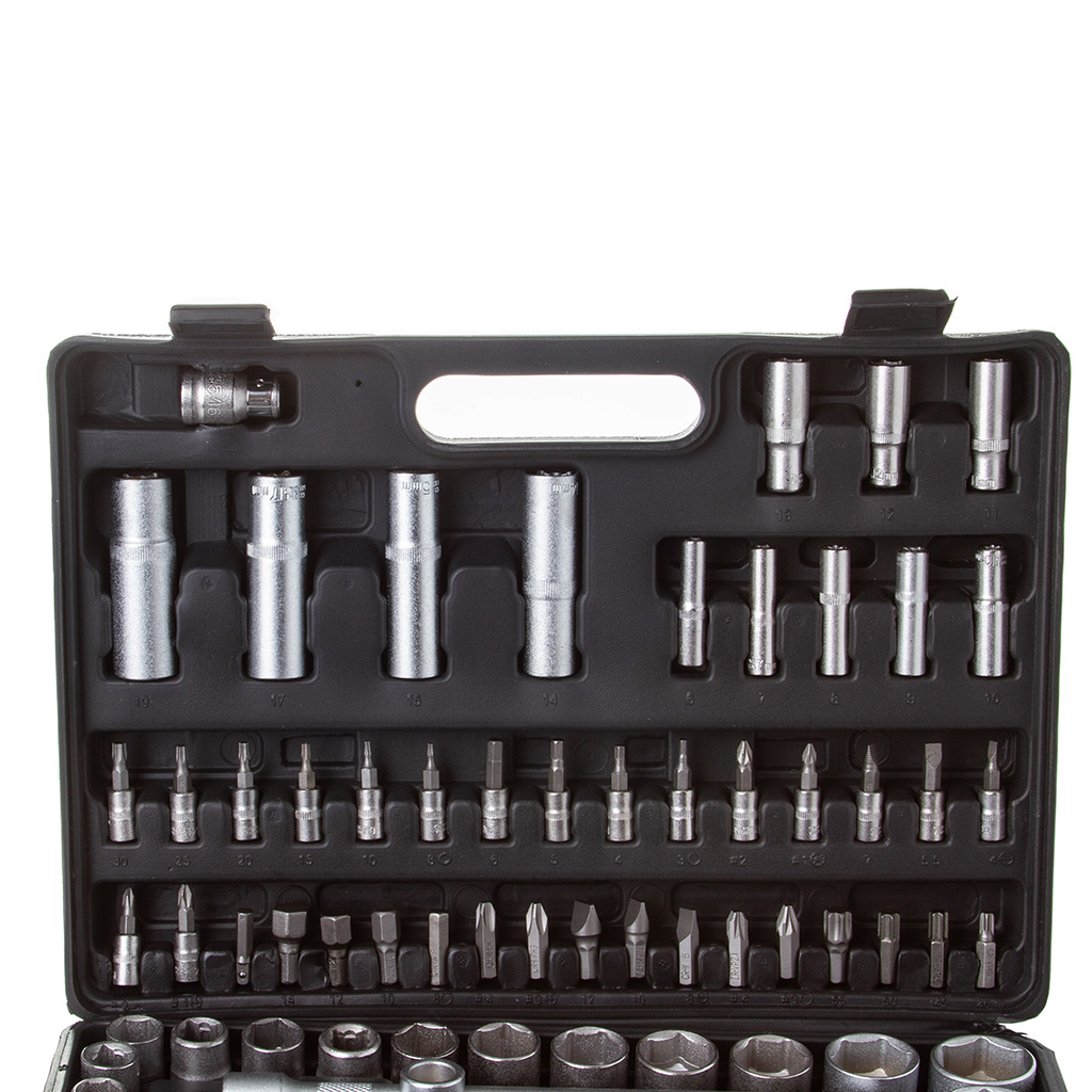 Uniwersalny zestaw kluczy nasadowych 94 elementów ze stali chrome vanadium. Klucze przeznaczone są dla amatorów i do domowego użytkowania. Wykonane z materiału chromowo-vanadowego (CrV - stal narzędziowa). Zestaw jest zapakowany w praktyczną walizkę. Nasadki odznaczają się dużą różnorodnością rozmiarów i rodzajów, w zestawie znajdują się 2 grzechotki. Pełen pakiet nasadek zapewni doskonałe dopasowanie kluczy do danej potrzeby - w każdym miejscu pracy. Zestaw kluczy znajduje się w poręcznej walice przełożonej miękką gąbką zabezpieczającą. W ZESTAWIE: Nasadki 1/2": 10, 11, 12, 13, 14, 15, 16, 17, 18, 19, 20, 21, 22, 24, 27, 30, 32mm Nasadki do świec 1/2": 16, 21mm Nasadki długie 1/4": 6, 7, 8, 9, 10, 11, 12, 13mm Wkrętak 1/4" do nasadek i bitów Adapter do bitów 1/2" Grzechotki 1/2" i 1/4" Przedłużki 1/2" (125, 250mm) oraz 1/4" (50, 100mm) Pokrętło typ T z kwadratem zabierającym 1/4" Przeguby Cardana 1/2" i 1/4" Imbusy typ L (1.5, 2, 3mm)》》》 ZESTAW NARZĘDZIOWY KLUCZY NASADOWYCH 94SZT KLUCZE NASADOWE 1/4 1/2" M58210C 《《《