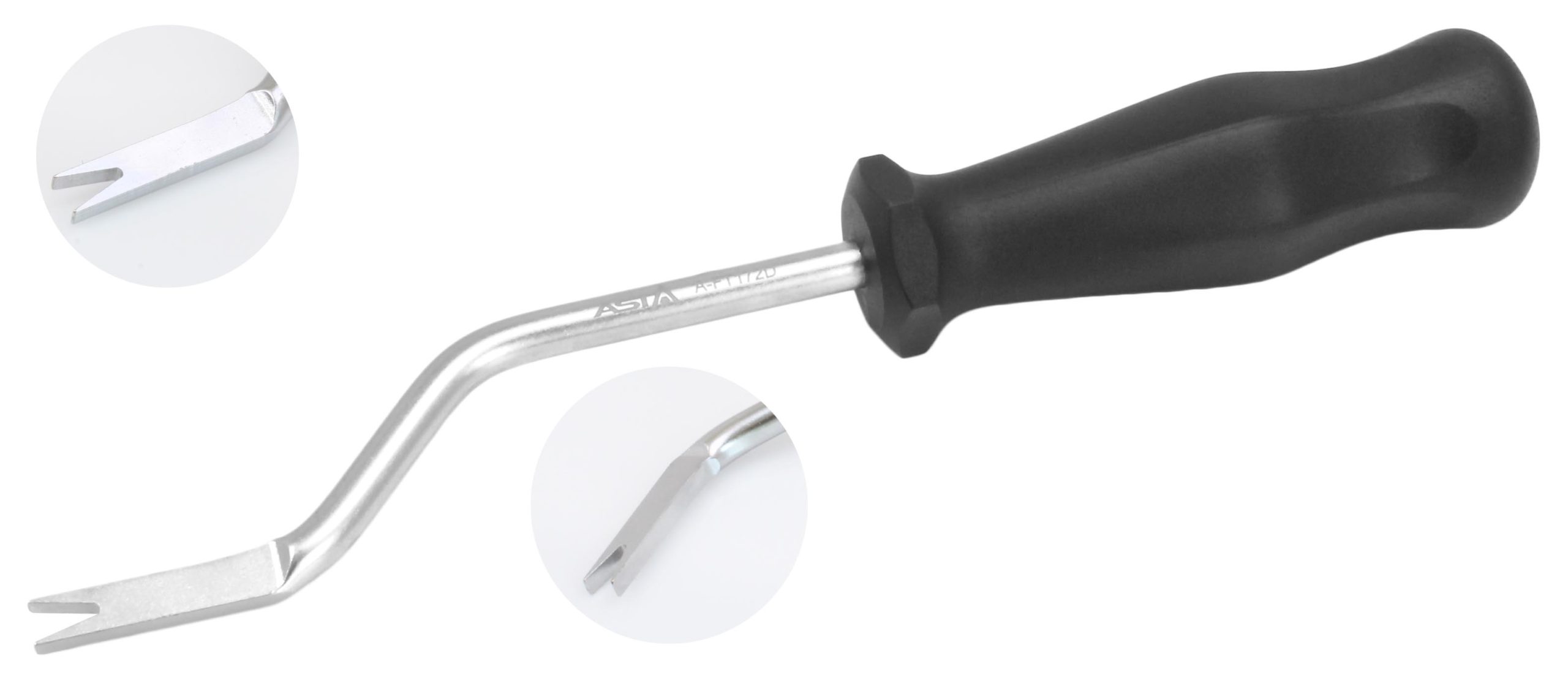 Dźwignia o specjalnie wyprofilowanym kształcie służąca do demontażu uchwytów znajdujących się wewnątrz samochodu przy podsufitce bez ryzyka uszkodzeń. OEM: T10518A