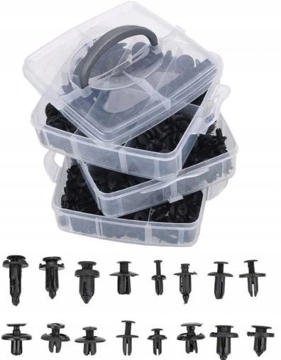 Uniwersalny zestaw kołków + zatrzasków samochodowych do mocowania tapicerki, elementów plastikowych, zderzaków, uszczelek itp. W zestawie standardowe rozmiary stosowane w większości marek samochodów. Specyfikacja techniczna: ✅ niezbędny w wyposażeniu każdego samochodu, ✅ trwały materiał, ✅ 630 sztuk zamkniętych w wygodnym pudełku, ✅ 16 rodzajów kołków samochodowych, ✅ uniwersalne spinki, ✅ W pakiecie: