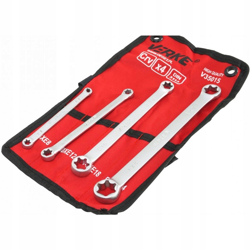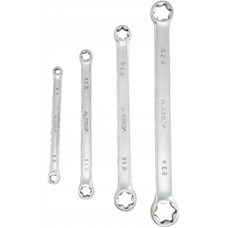 KOMPLET 4 KLUCZY PŁASKICH OCZKOWYCH GWIAZDKA TORX 8 ROZMIARÓW E6-E24